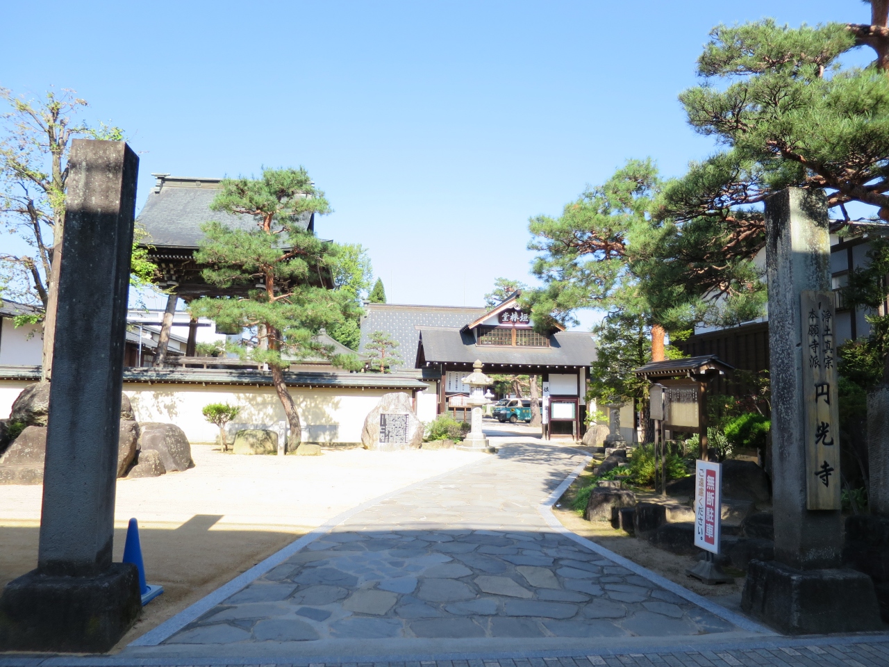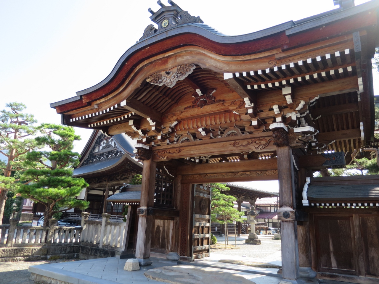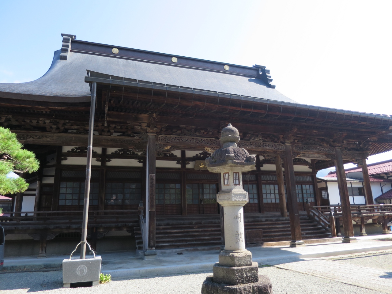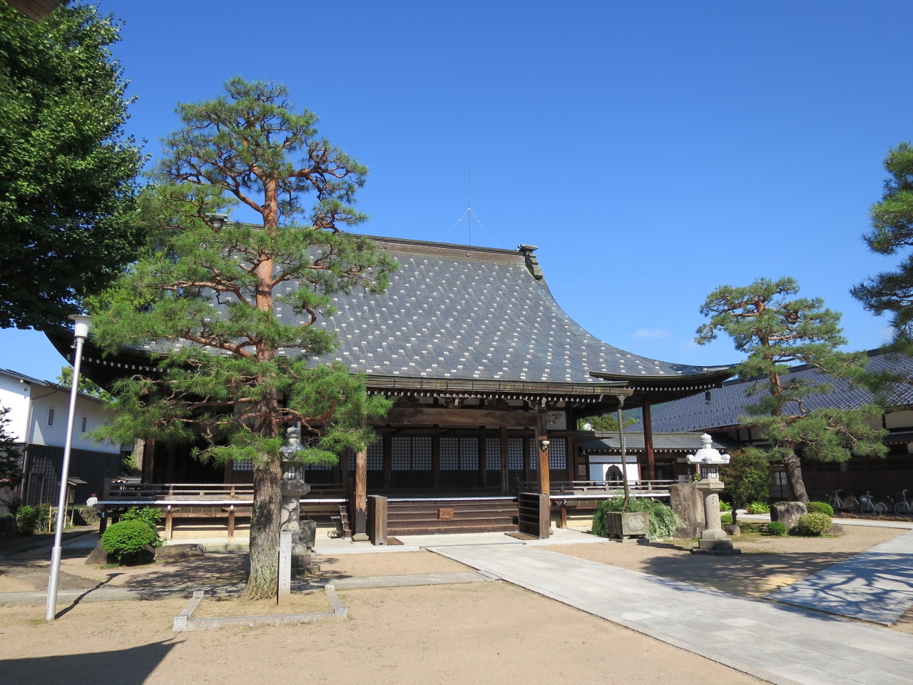 飛騨古川の観光ポイントである瀬戸川と白壁土蔵街のそばにあるお寺です。瀬戸川からみた本堂の妻には亀が彫られており、火災除けになったと言う話があるのすが、屋根が邪魔になって亀の彫り物の上部だけしか見られません。