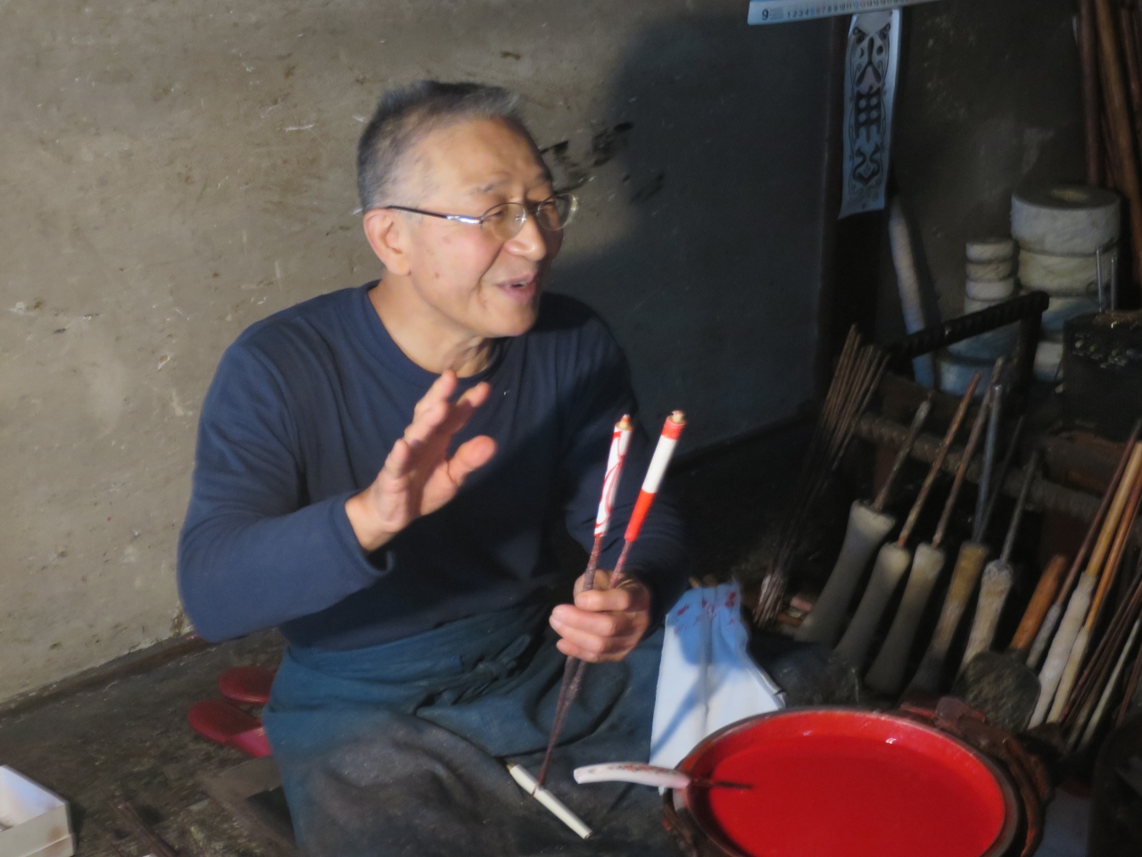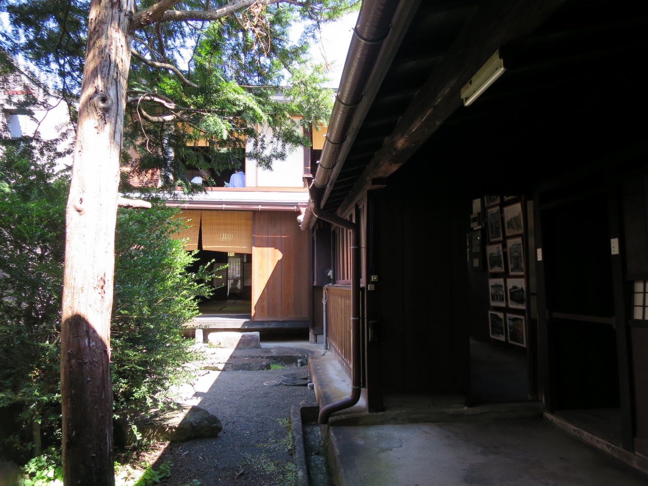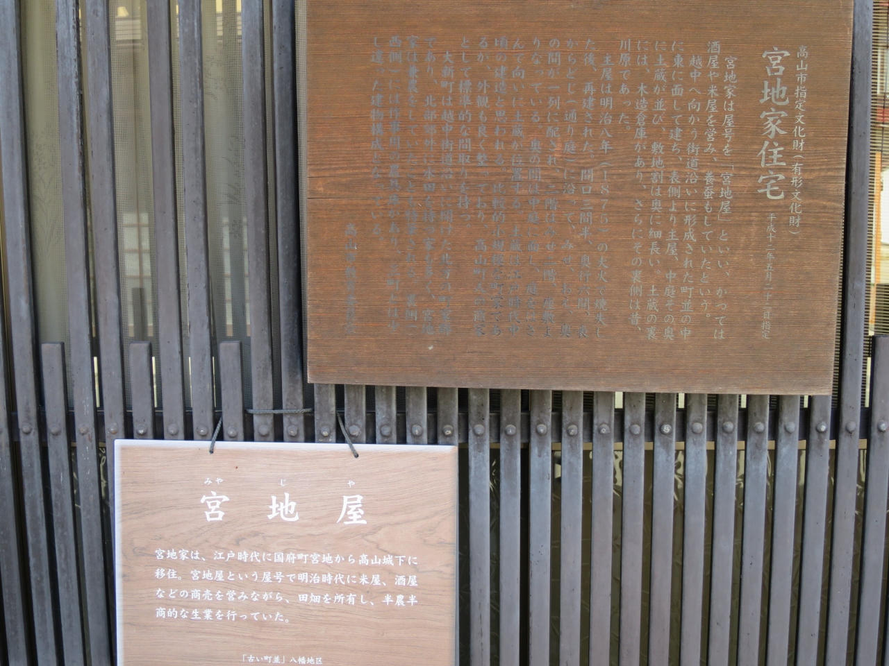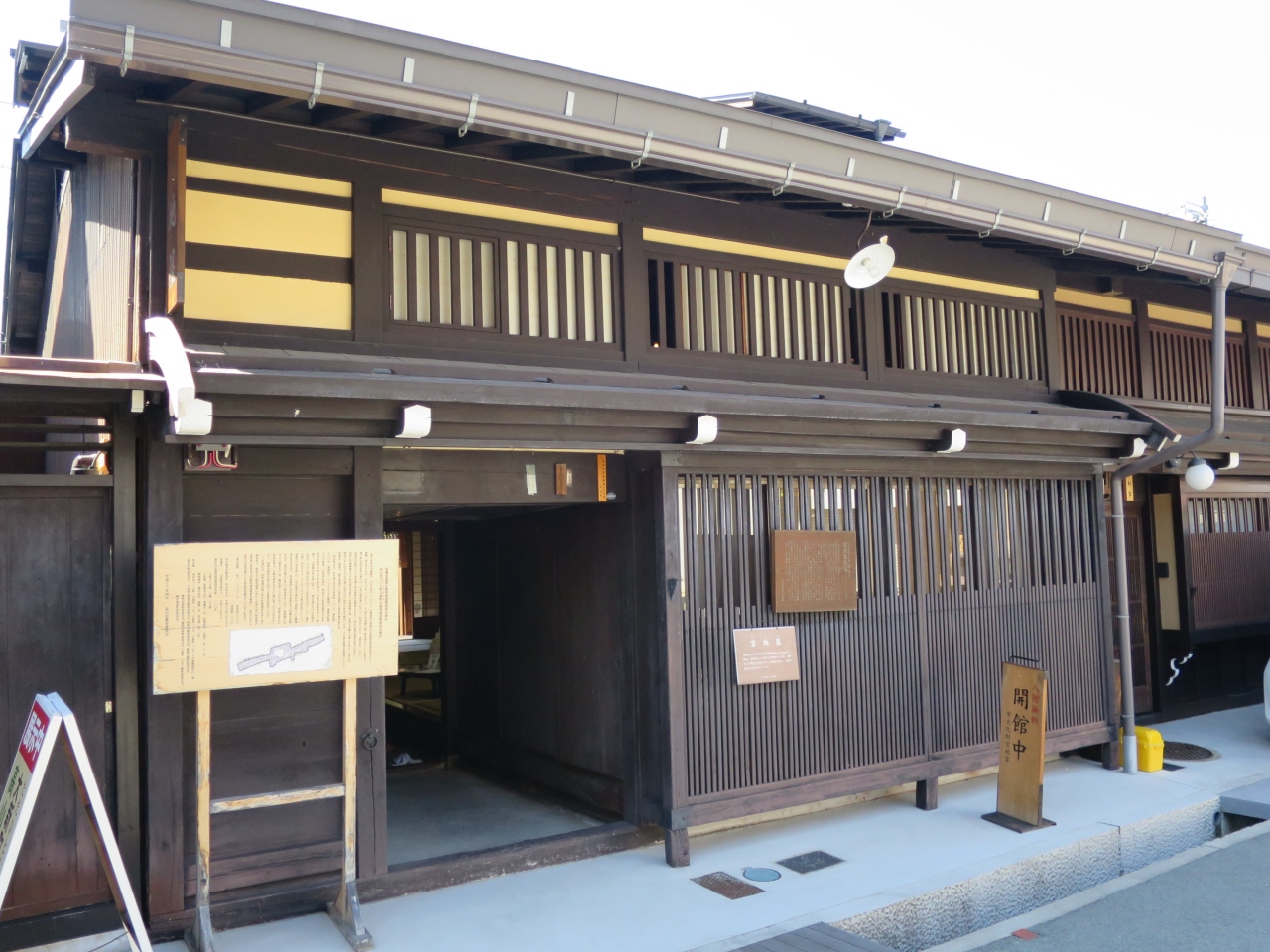飛騨古川の旧街道沿いに2軒ある老舗地酒酒蔵の一つです。宿泊した旅館で「蓬莱」と言う酒のあらばしりを戴き、買いに行きました。いかにも酒蔵といった感じの建物には酒林(杉玉)が下がり、梁には駕籠がぶら下がっていました。