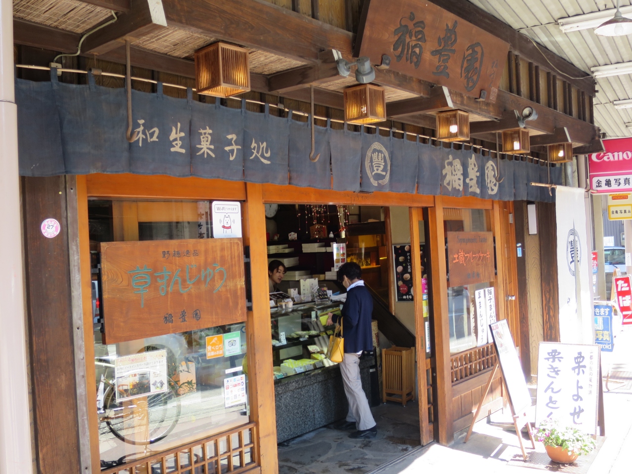 一升瓶の「蓬莱」を買ったら、わさび漬けをサービスでくれました。クレジットカードは使えません。- 旅行時期