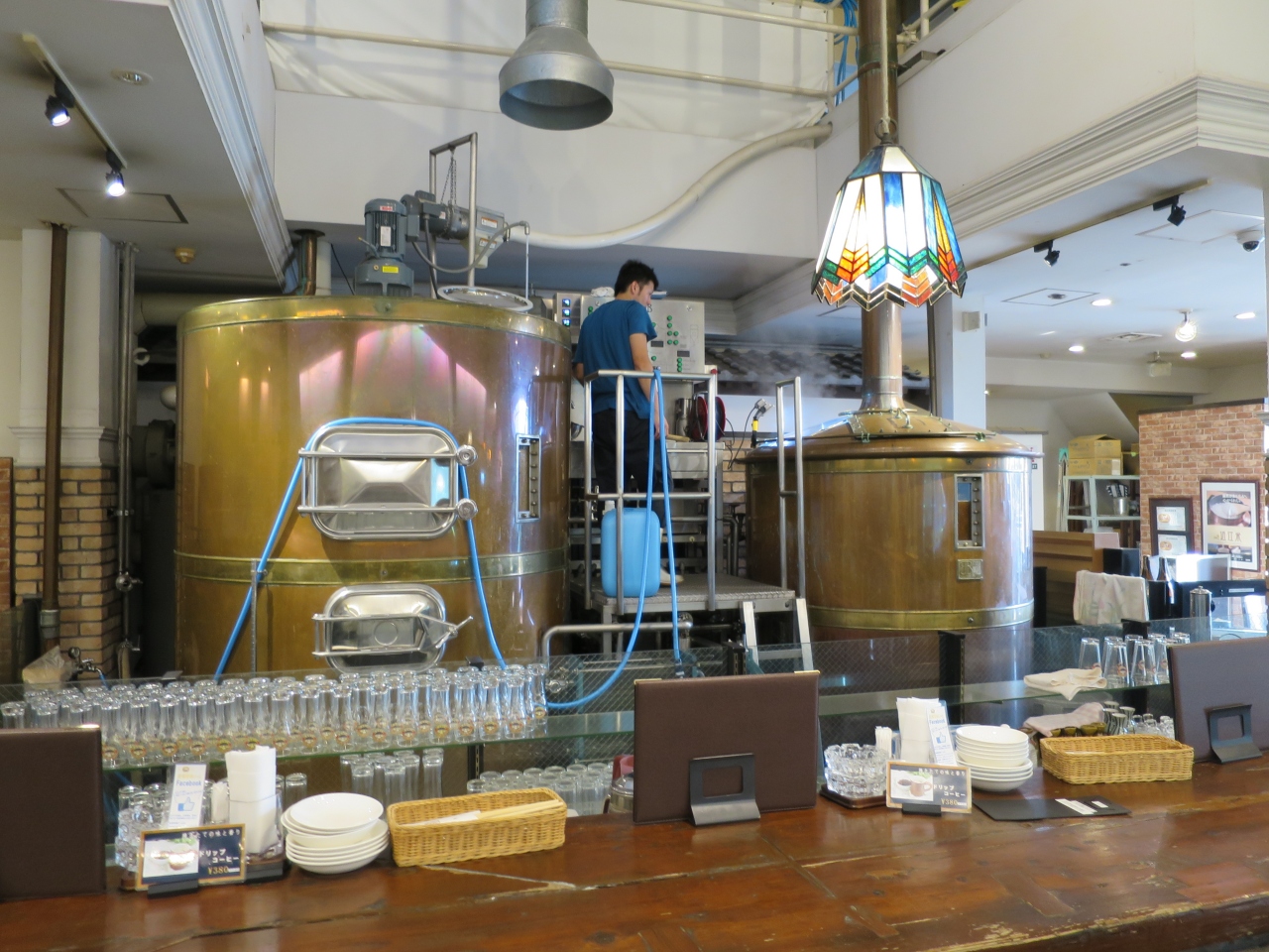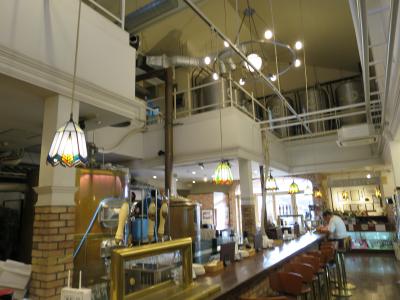 長浜の米川沿いにある江戸時代の米蔵を改装した地ビールレストランです。店内にはカウンター席とテーブル席があり、カウンターの奥の貯槽タンクからビールが注がれます。地ビールには長浜エール、伊吹バイツェン、淡海ピルスナー、黒壁スタウトの4種があります。料理は近江牛を始めとした沢山のメニューがあり結構迷います。