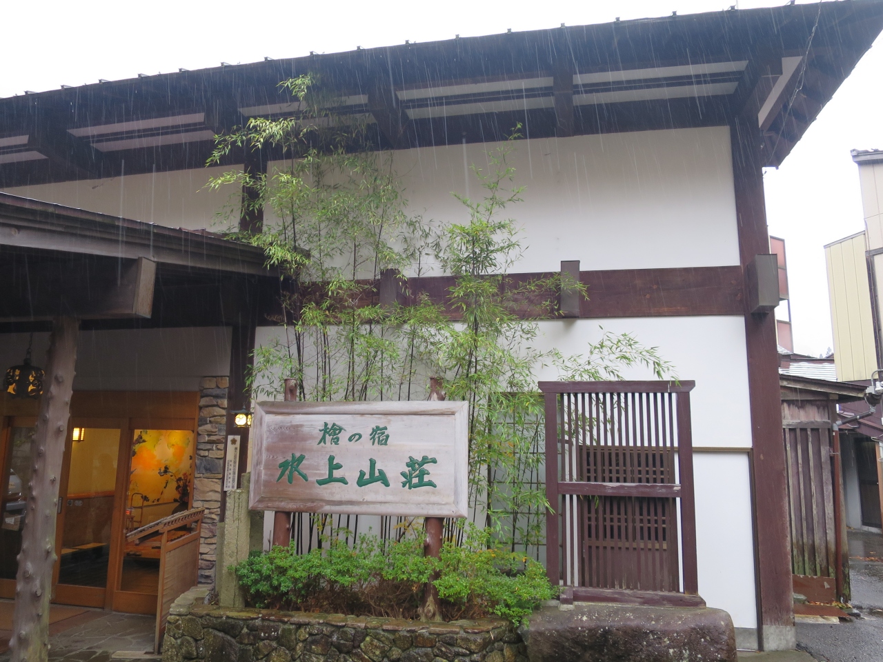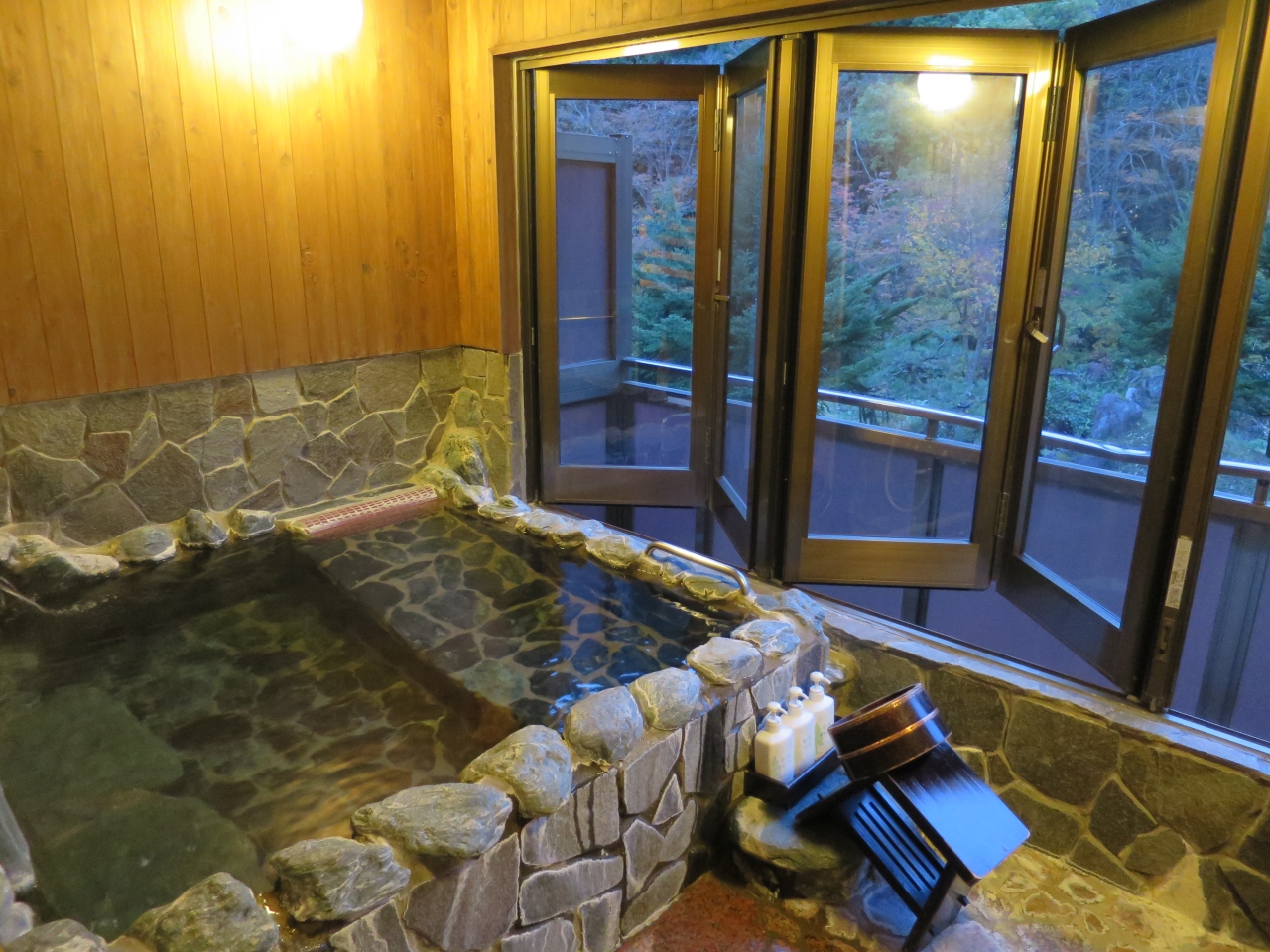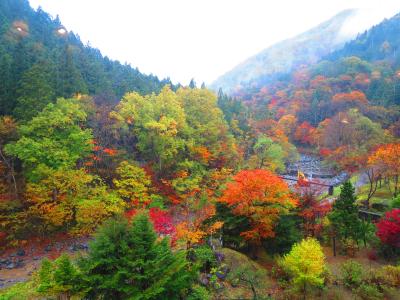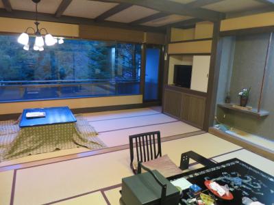 場所は谷川温泉の最奥にあり部屋数は20部屋程しかありません。宿からの眺望は目の前の谷の奥に谷川連峰が見え、紅葉の盛りは少し過ぎていましたがとても綺麗でした。