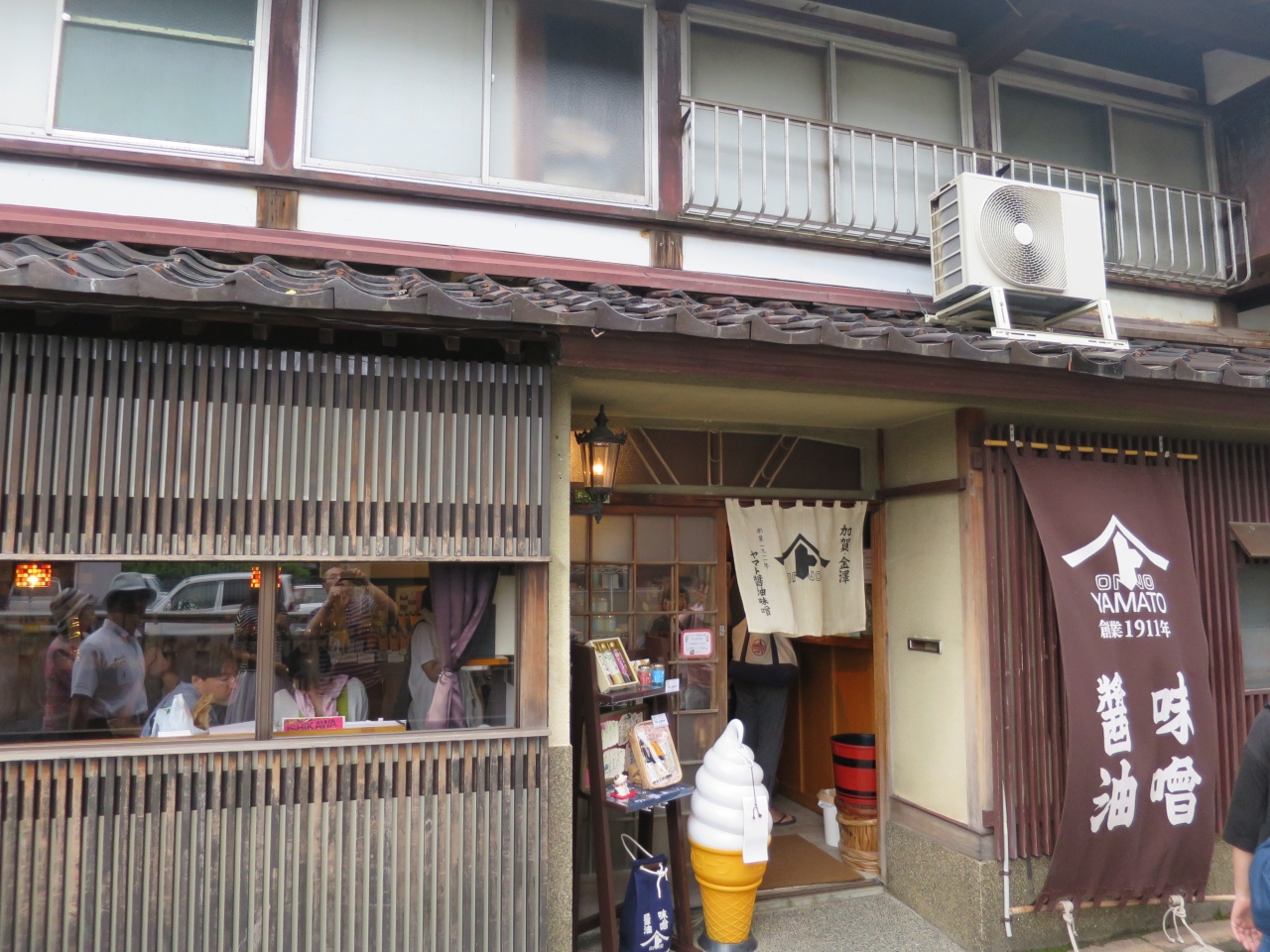 金沢 東茶屋街から一筋浅野川に入った所に、創業100年になるヤマト醤油味噌の直営店があります。喫茶室が併設されており、外見は醤油、味噌のお店には見えませんが、醤油、味噌が売られています。