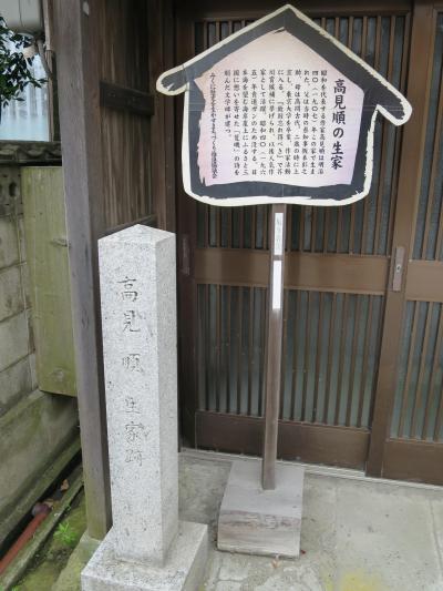 福井 三国町の商工会館から50m程の場所に昭和を代表する作家 高見順の生家跡があります。古い民家の入口の左手に立て看板と、石碑があるだけで、中も見られず、あまり見応えはありません。高見順のファン以外は興味なしだと思います。