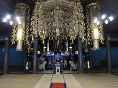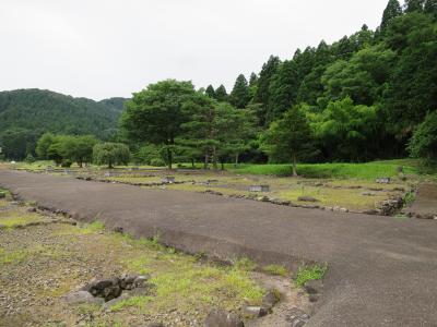 福井市から30分程の一乗谷にある朝倉氏の戦国時代の城下町、館の遺構です。南北に延びる谷に沿った広大な場所に、館の礎石、庭園の跡が残りますが、建物は唐門と、復元町並み位しかありません。遺跡は良く整備されており、幾つかもモデルコースがあります。しかし、すべてを見て回ると相当時間が掛かるので、朝倉館跡庭園付近を中心に回ることをお奨めします。