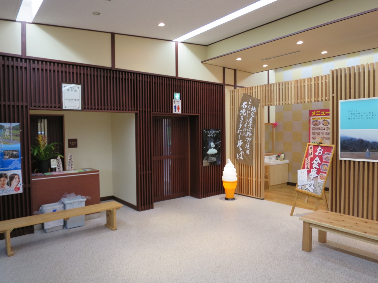 福井 一乗谷朝倉氏遺跡の近くにある道の駅です。道の駅と言うと大抵の所は駐車場は車があふれ賑わっている感じがありますが、こちらの道の駅は今年4月に出来たばかりで、がらがら。ふれあい情報館の前にある、水車があるただの駐車場と言った寂しさでした。ふれあい情報館では小さいながら土産物、観光案内パンフレット等がありました。