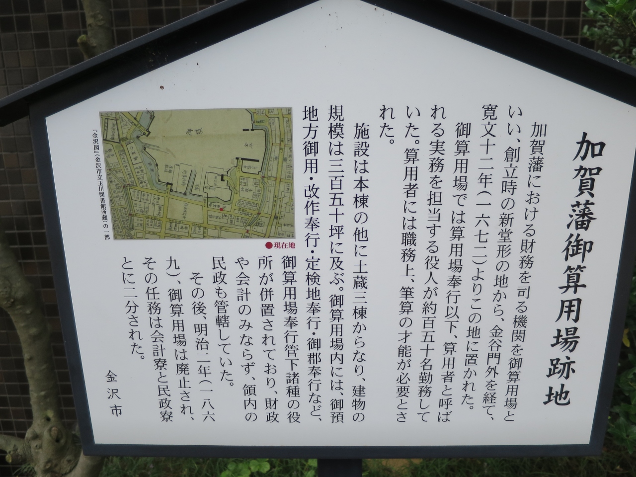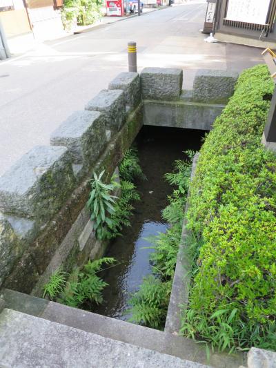 金沢 尾山神社の神門手前の階段下、鳥居の左手に金沢城惣構跡の西内惣構跡尾山神社前遺構があります。金沢城下の防御のために高山右近が作ったと言われる堀の遺構です。尾山神社周辺の堀はほとんどが暗渠化され、遺構が見られるのは、ほんの数メートルしかありません。しかし歴史を感じさせる場所の一つです。
