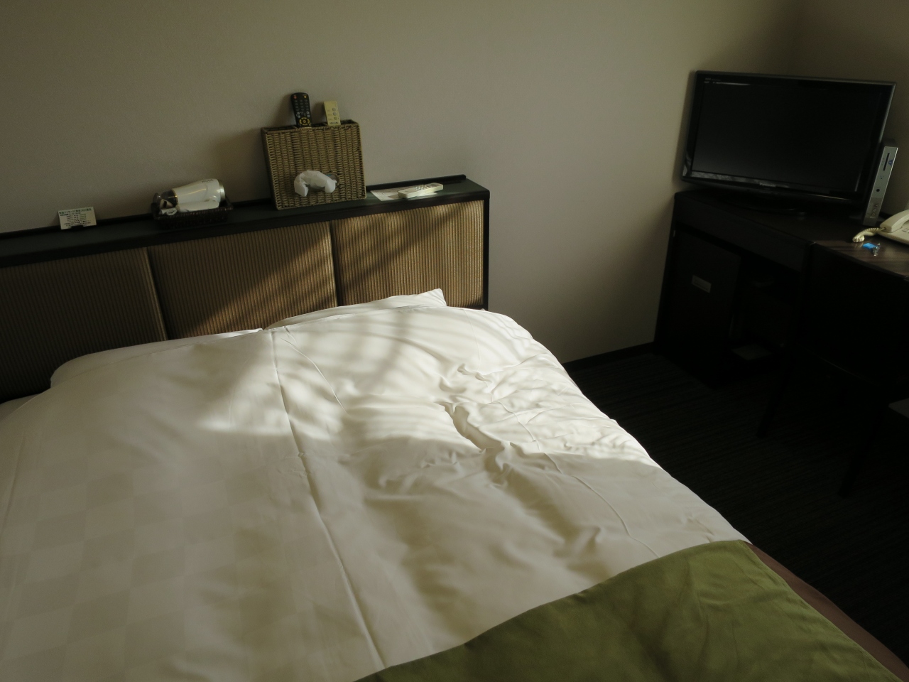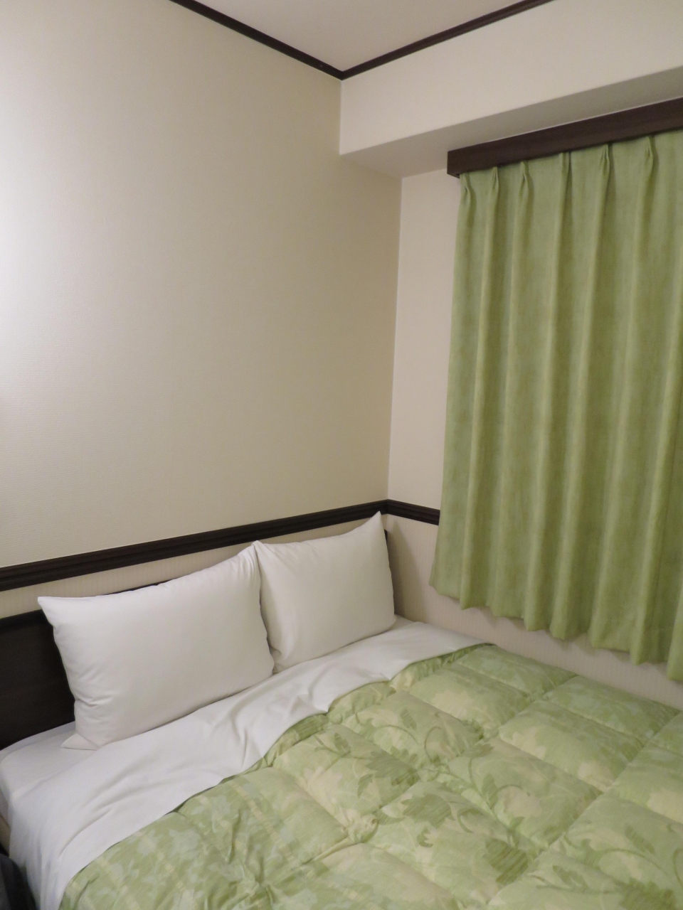 ダブルの部屋のベッドは少し広めでゆったりと寝ることができました。