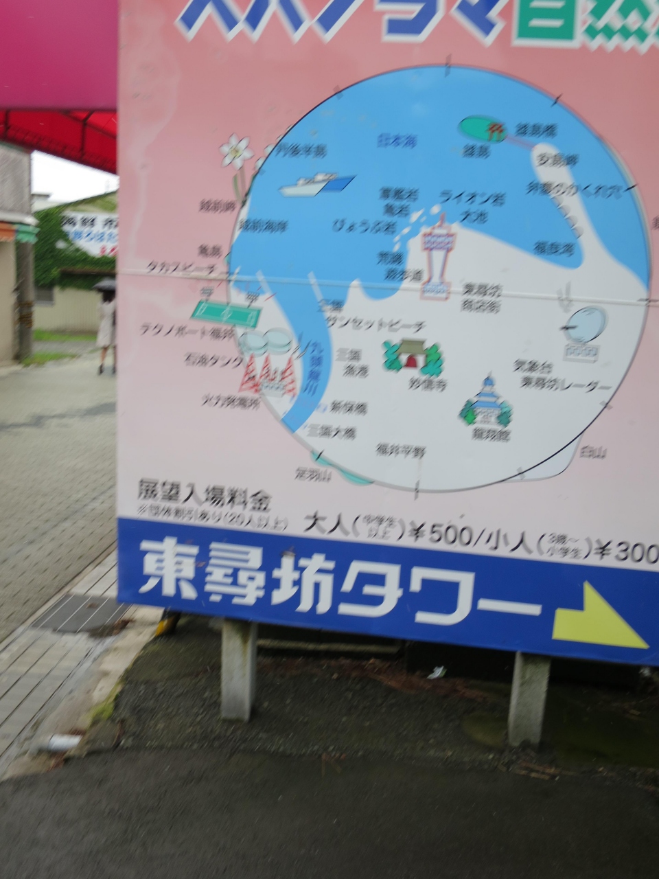 東尋坊に向かう商店街入口の左手にある、さほど高くもないタワーです。