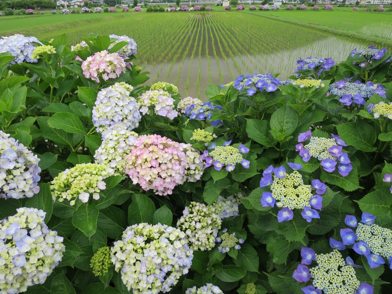 数年前から気になっていた開成町のあじさいを見てきました。あじさいの里で開かれるあじさい祭は稲の植えられた田んぼと、田んぼのあぜに植えられたあじさいの花と対比がとても見事で見応えがあります。他の地でこのような景色は見たことがありませんでした。