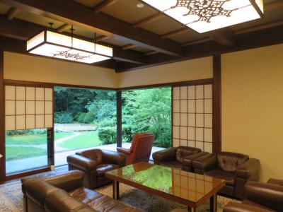 設計は新数寄屋建築で有名な吉田五十八の設計で、以前見学した京都北村美術館の住居棟(吉田五十八設計)と似ていました。