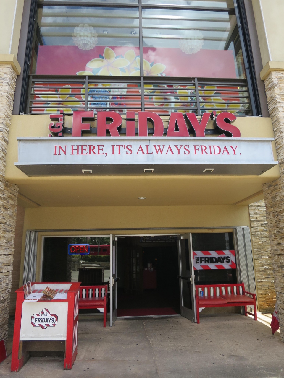 グアム タモン地区にあるショッピングモール内 JPストアの正面右手にT.G.I.フライデーズがあります。日本にもおっ店があり、いつも混んでいますが、こちらの店では予約もせずに昼に行っても余裕ですぐに席に通してくれました。