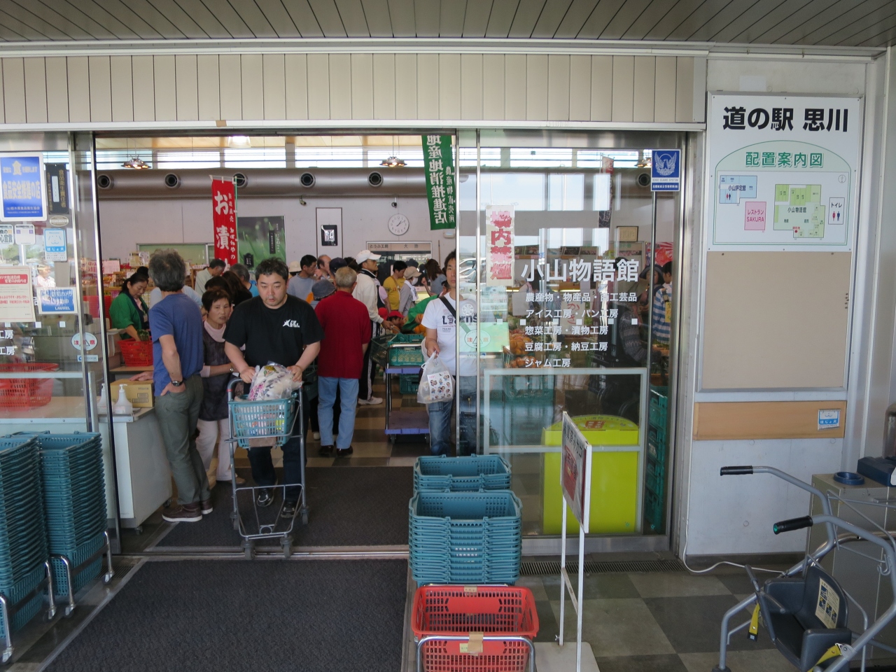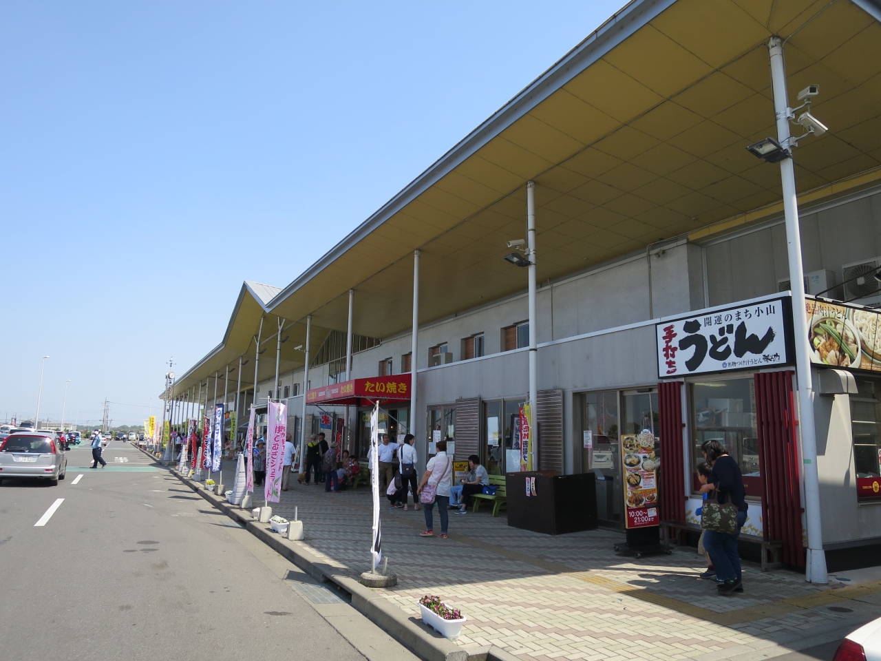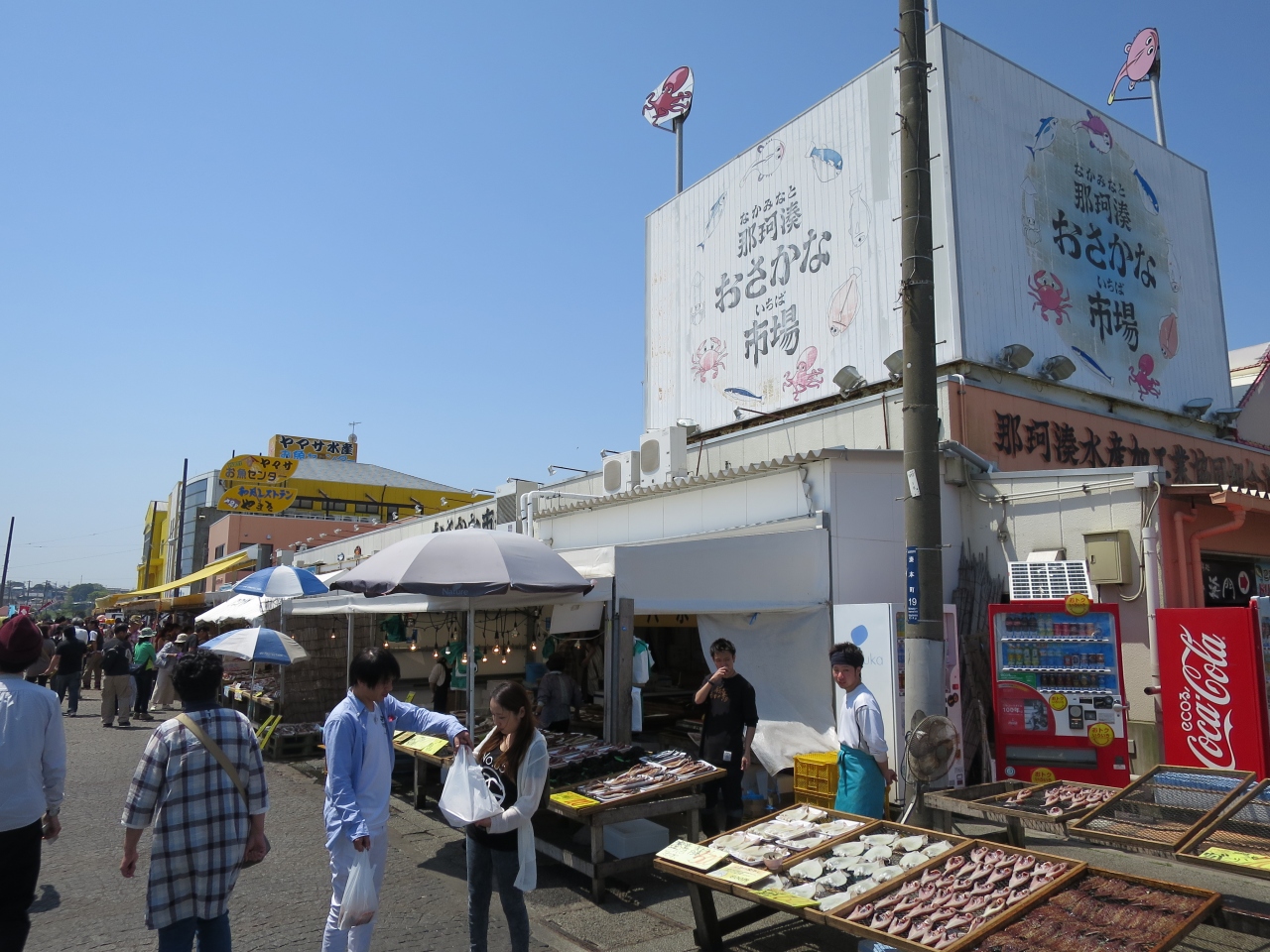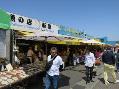 GWの初日の10時に行きました。既に市場の港側にある有料駐車場は入庫待ちの車列が100m程出来ていました。少し離れて港左手の護岸壁では無料で駐車できるので、そちらに車を停めました(入庫待ち無し)。