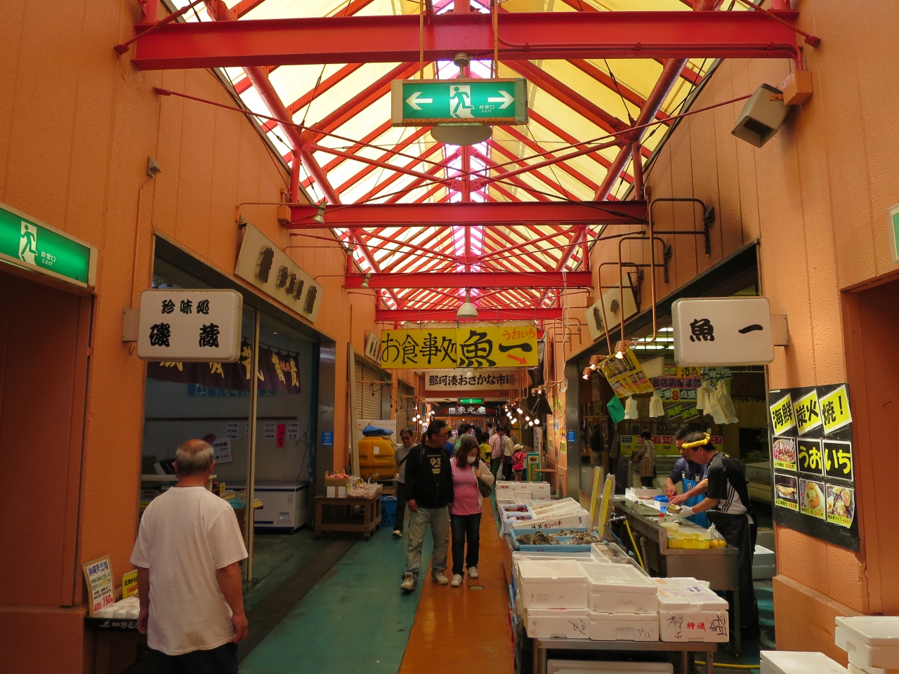 おさかな市場まで歩いていくと、市場は沢山の人でごったがえしていました。たぶん更に遅いともっと混んでいたと思います。