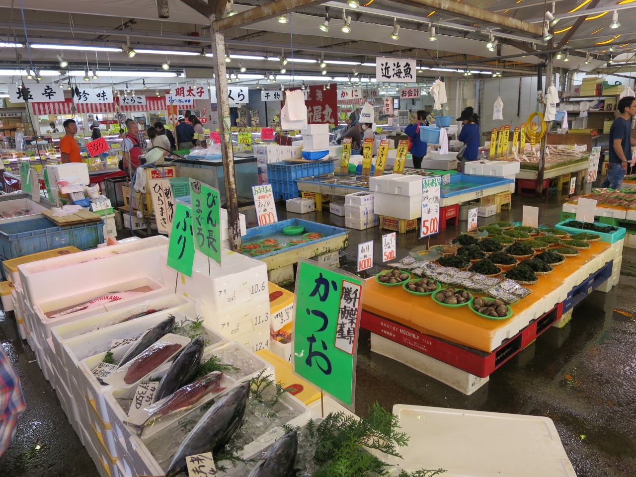 市場では様々な魚介類がめちゃくちゃ安く売られています。近くのスーパーの半額位だと思います。しかも、新鮮。保冷バッグがなかったので、イカの一夜干ししか買いませんでしたが、今度行くことがあれば保冷バッグは必ず持って行きます。- 旅行時期