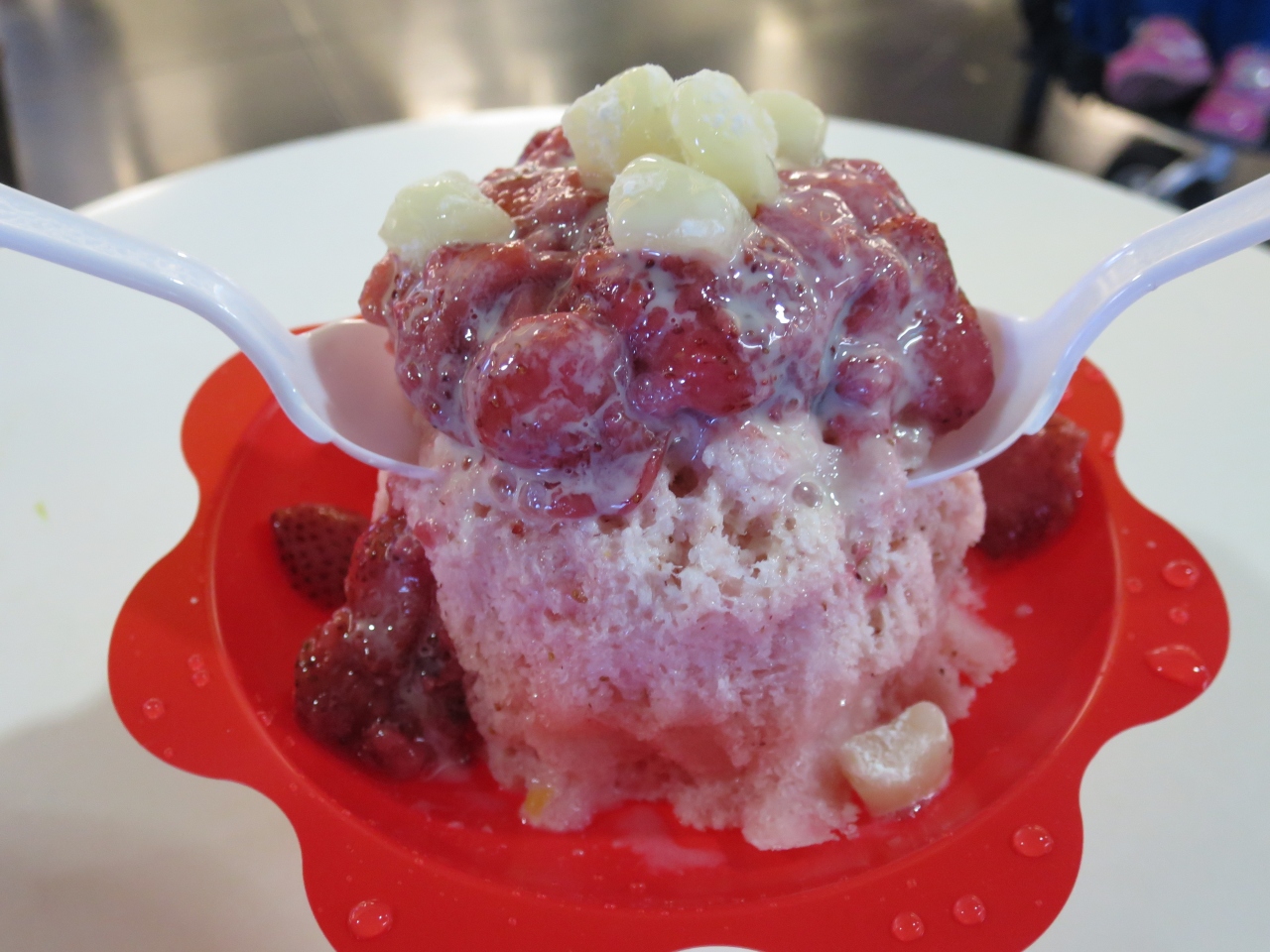 暑かったので、ストロベリーアイスシャーペットを戴きました。ま、白玉の様な餅玉が乗った普通の味でした。- 旅行時期
