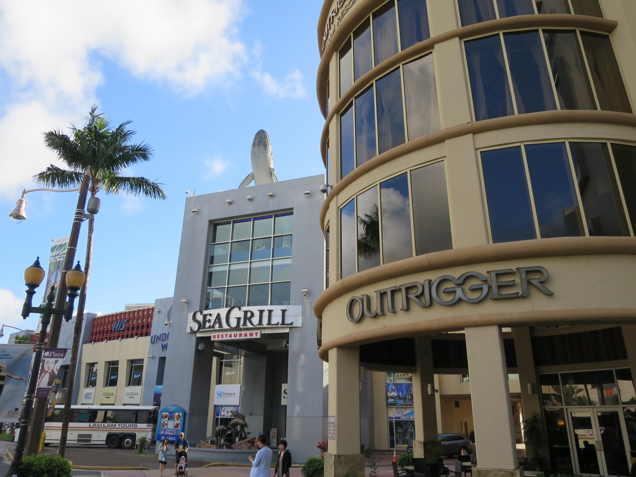 グアム タモン地区のアウトリガーホテルと道を挟んで反対側にあるショッピングモールです。ルイヴィトン、ブルガリ、エルメス、ディオール等そうそうたる一流ブランドのショップが並びます。円高の時ならば、ここぞとばかりに買うところですが、今は円安で、場合によっては日本で買った方が安いかもしれません。