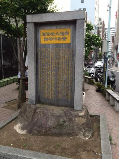 京橋駅から中央通りを銀座方面に向かった、首都高の手前を右に入った江戸歌舞伎発祥の地の碑がある小公園の奥に京橋大根河岸青物市場跡があります。