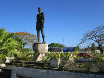 大酋長キプハ像はグアムでは変わった交差点の横にあり、右折ロータリーの中にあり、像の下に行くには必ず道路を横断する必要があり、注意が必要です。