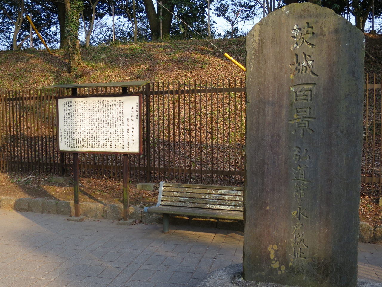 水戸 弘道館を見学したあと、大手橋を渡ると水戸城の土塁があり、この地が水戸城跡であることが分かります。この大手橋を渡った所が大手門のあった場所です。