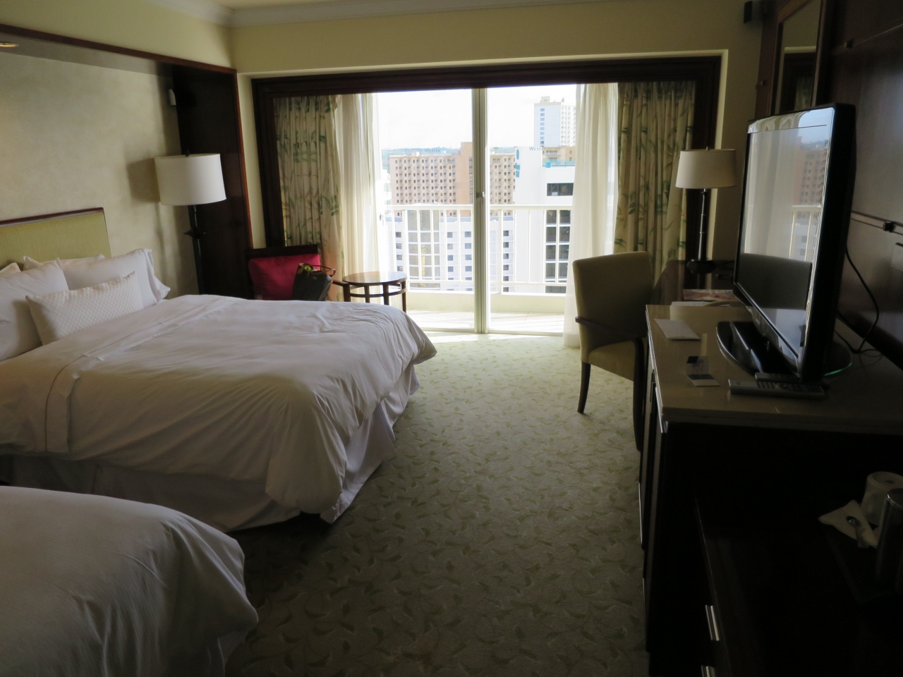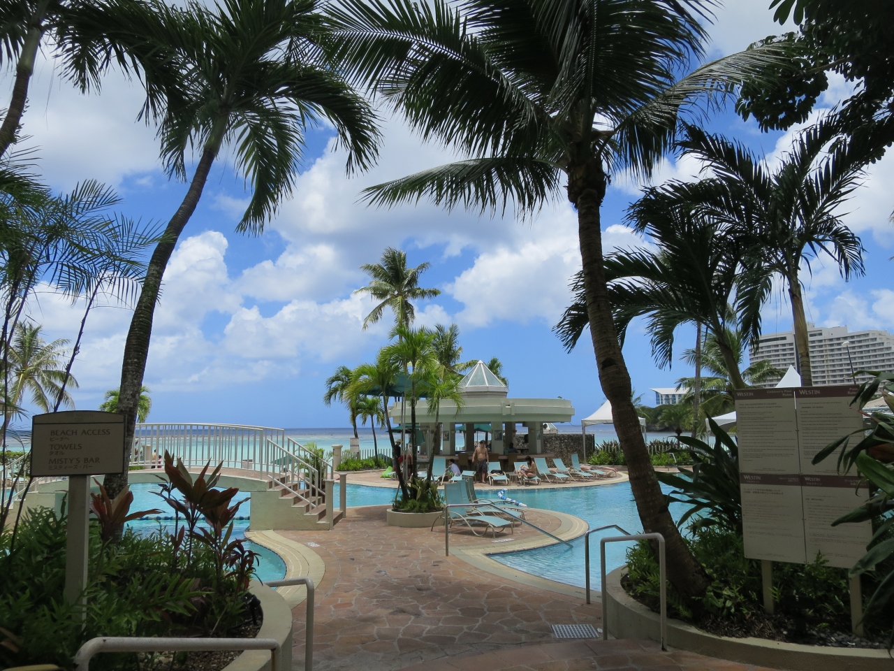 オーシャンビューの部屋はバルコニーに出るとタモンビーチが見られ、特に朝が綺麗でした。隣のアウトリガーホテルが無ければ最高の景色です。