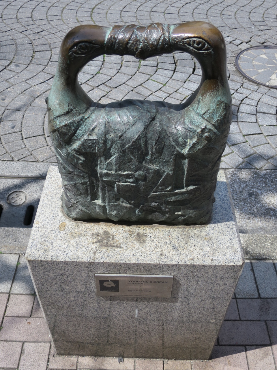 麻布付近にある12の大使館の協力で作られた12の微笑みのモニュメントの一つで、ルーマニアのニコライ・パドユラルが制作した「ユガヌの夢」のモニュメントです。パティオ十番に近い十番会館の前に設置されています。私には何を表現しているのか、良くわかりませんでした。包帯を巻かれた2羽の鳥?にしか見えません。こちらも立ち止まって見る人は殆どいません。