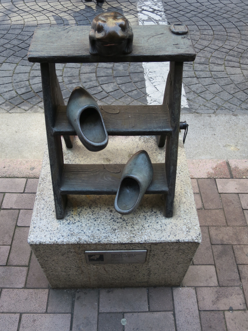 麻布付近にある12の大使館の協力で作られた12の微笑みのモニュメントの一つで、オランダ王国のマーク・ブルースが制作した「はしごの上でほほえんで」のモニュメントです。十番通りの暗闇坂を下った辺りに設置されています。はしごの上に鎮座しているのはカエルでしょうか?こちらも立ち止まって見る人は殆どいません。