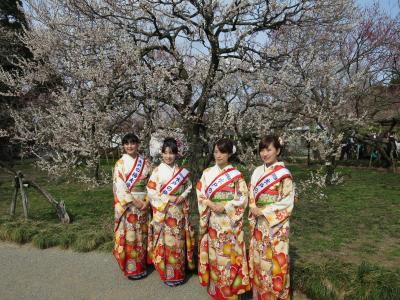 好文亭近くにいくと水戸の梅大使4人が観光客を出迎えてくれました。一緒に写真を写ってくれました。- 旅行時期