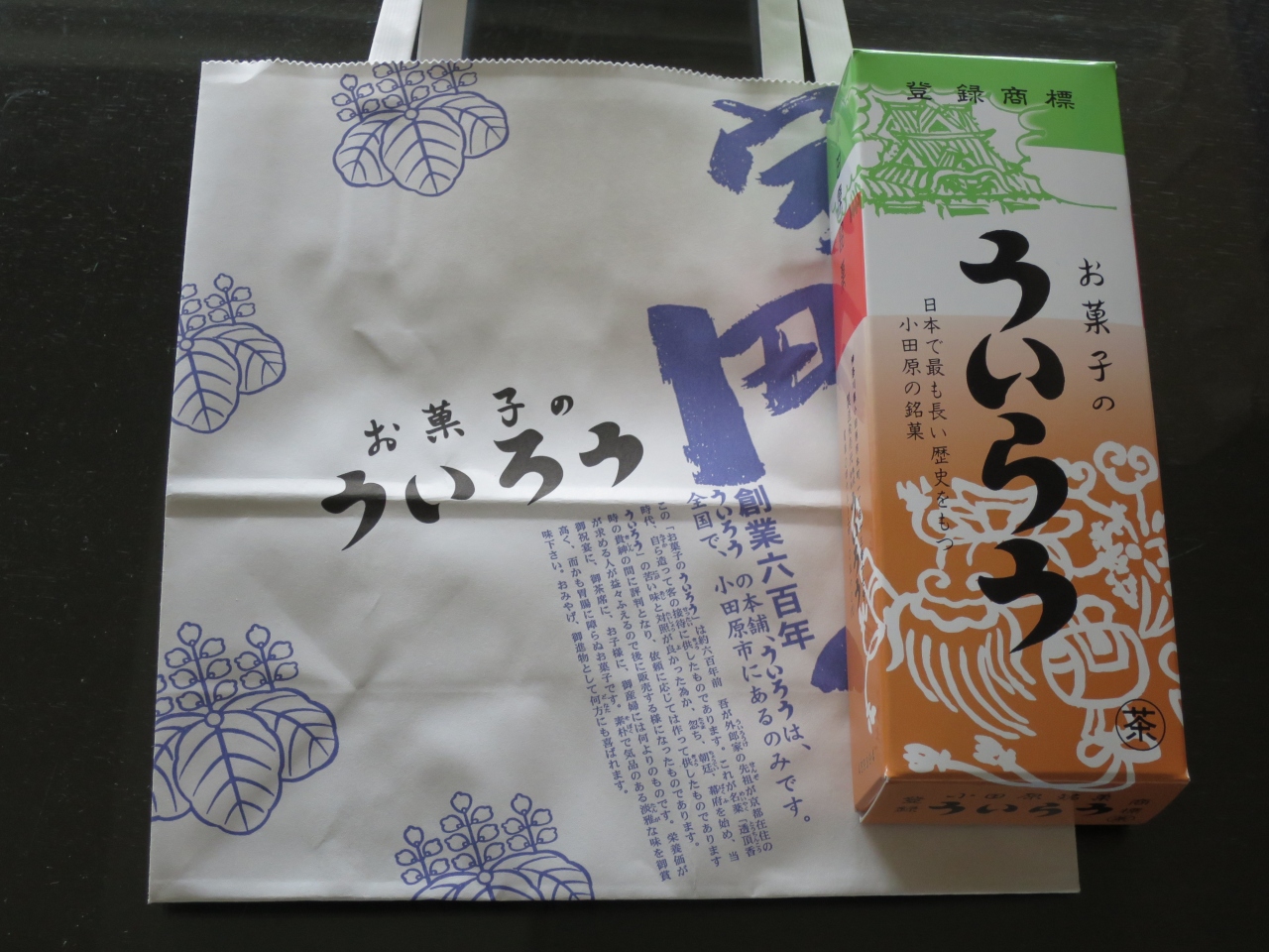 ういろうと言うと名古屋のういろうを想像する人が多いと思いますが、実は小田原のういろうが本家本元のういろうです。国道1号線沿いにあるお城の様な形をしたお店に入ると、右手がお菓子のういろう、左手が薬のういろうが売られています。今回もちろんお菓子のういろうを買いました。名古屋のういろうと比較してもちもち感がとても強く歯に付く感があります。でも、美味しいです。