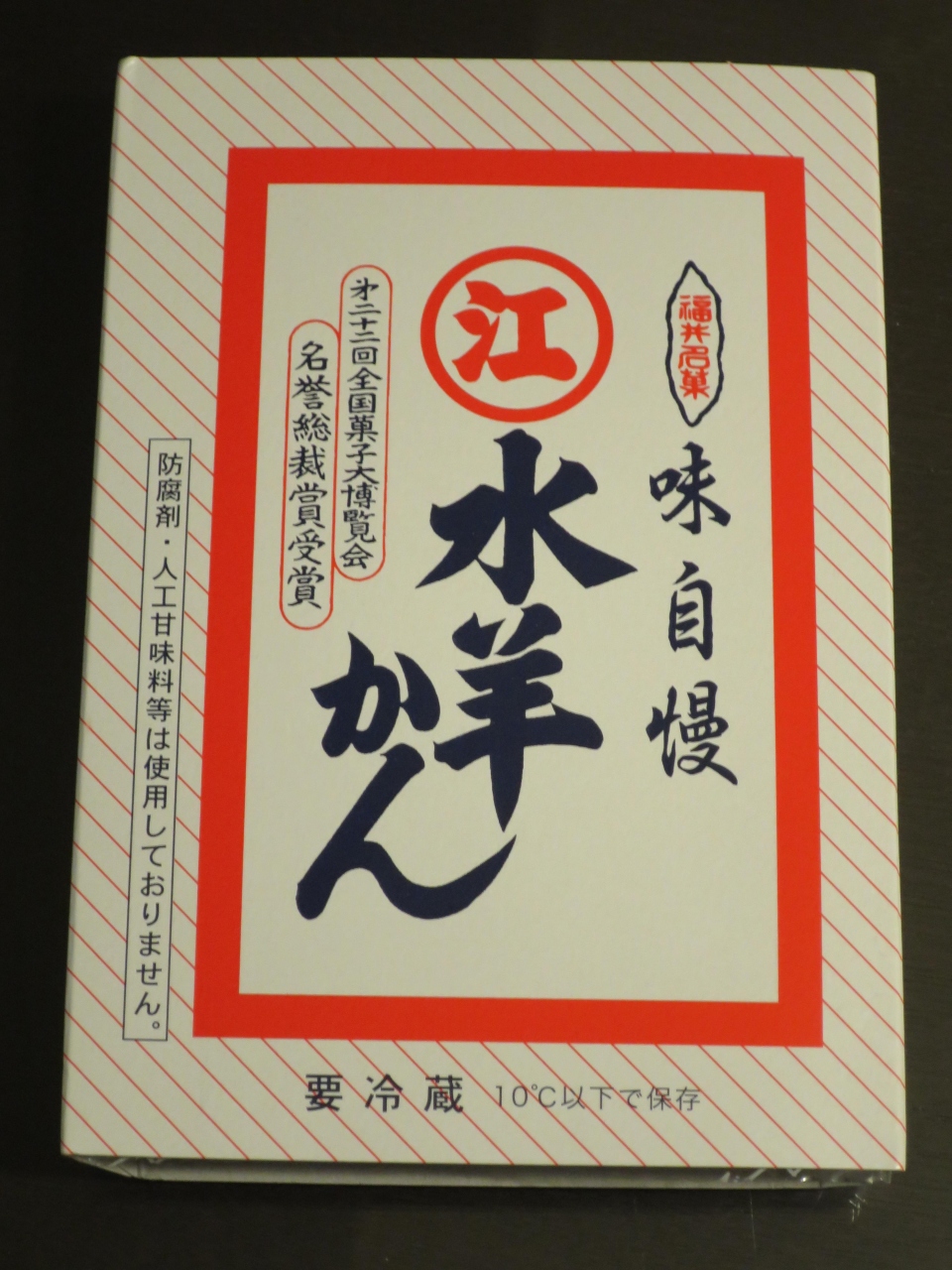 銀座一丁目にある食の國 福井館に行って来ました(福井館は青山にもあります)。店に入ると店員が水羊羹の販促をしていました。一般に水羊羹と言うと夏の食べ物と言う印象がありますが、福井では冬の名物だそうで、行った日が2/28だったので、食べ納めと言うことで販促していたようです。言うがままま水羊羹を買って家でたべましたが、冬に食べるのもまた美味しいです。