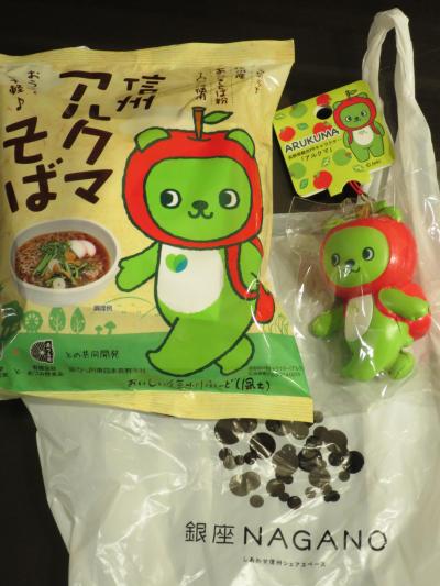 銀座四丁目交差点から近い銀座鹿乃子本店の左斜め前に長野県のアンテナショップ銀座NAGANOがオープンしたので行って来ました。以前の交通会館2Fにあった長野県東京観光情報センターよりも広く、蕎麦、おやき、五平餅等の長野物産品が沢山揃っています。2Fはイベントスペースと観光情報(パンフレット)が揃い、その一角に長野県のユルキャラ「アルクマ」のキャラクターグッズが販売されています。アルクマグッズが東京で買えるのはここだけだと思います。