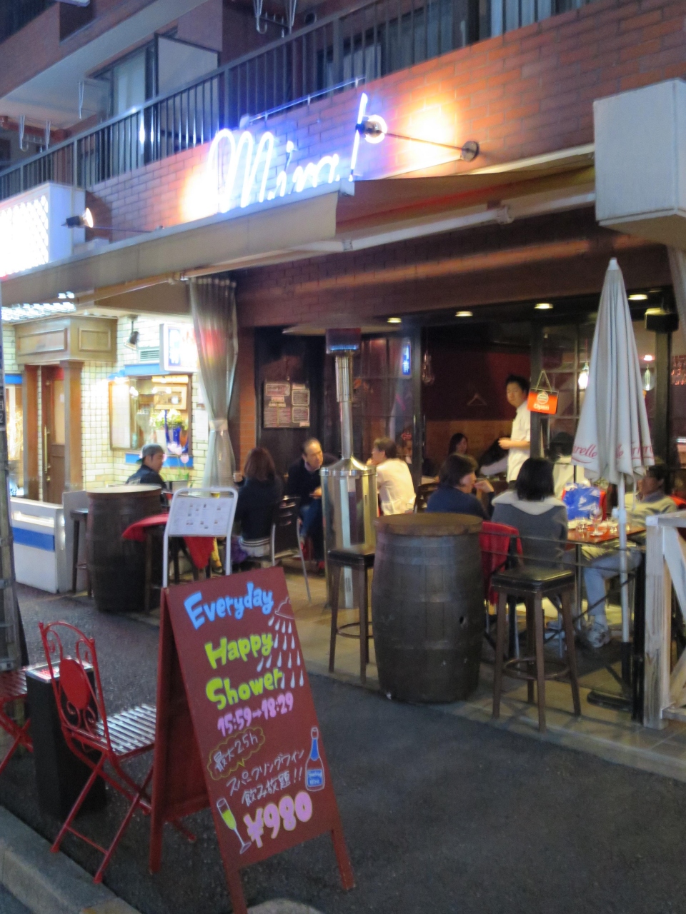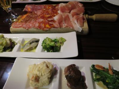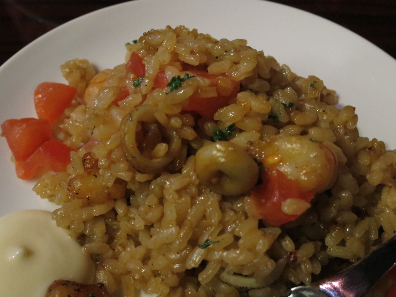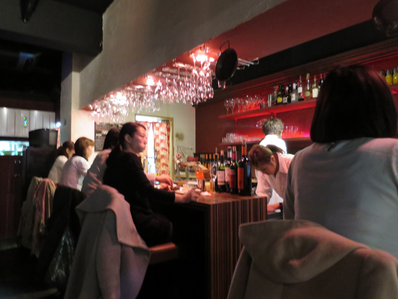 たまプラーザ駅から西側に5分程行ったところにあるスペインバルのお店です。駅前から少し離れた場所ですが以前からいつも賑わっていて気になっていたお店で、今回友人と行って来ました。19:30に行くとお店は満席で、未だ肌寒いこの時期で店頭の席も使っている程です。店内は赤い壁にカウンター席とテーブル席で、そんなに広いお店ではありません。頼んだのは3500円のコースで、ピンチョス(前菜)、生ハム、サラダ、アヒージョ、パエリア、フォアグラピンチョスでお酒は無し。イタリアンとはちょっと違った味が、とてもおいしかったです。