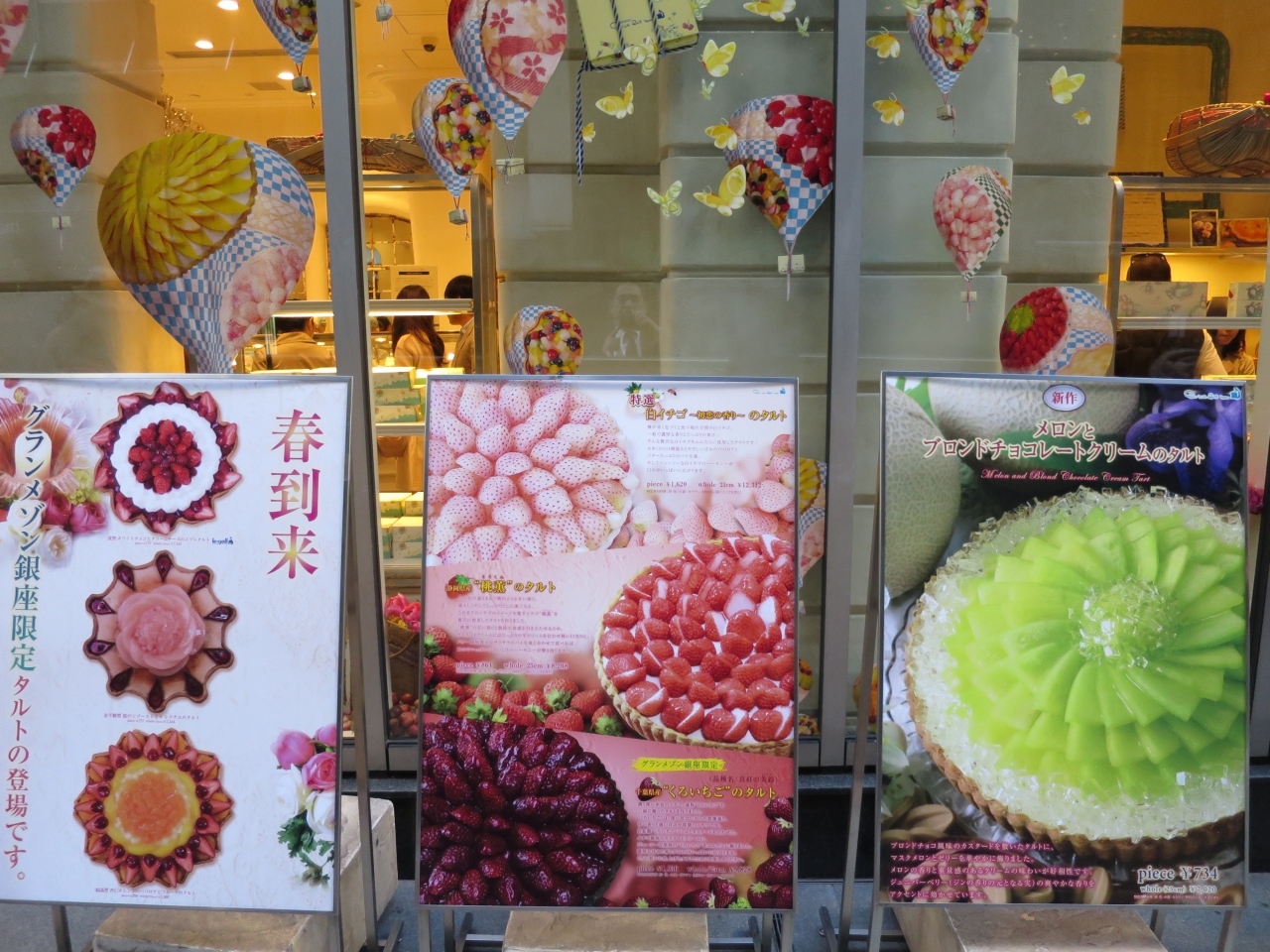 久々に行くと、以前あった銀座店の店舗がなくなり、20m程離れた並びにグランメゾン銀座店がありました。以前の店舗よりは広くなりましたが、大人気でタルトを買うのに店内で10分近く並ぶ程です。季節限定のイチゴが乗ったタルトが沢山あり、値段は600円~1300円台と高く、めったに買えませんが奮発しました(他の店ならケーキが3個は買えます)。みずみずしい果物が、とても美味しいタルトです。