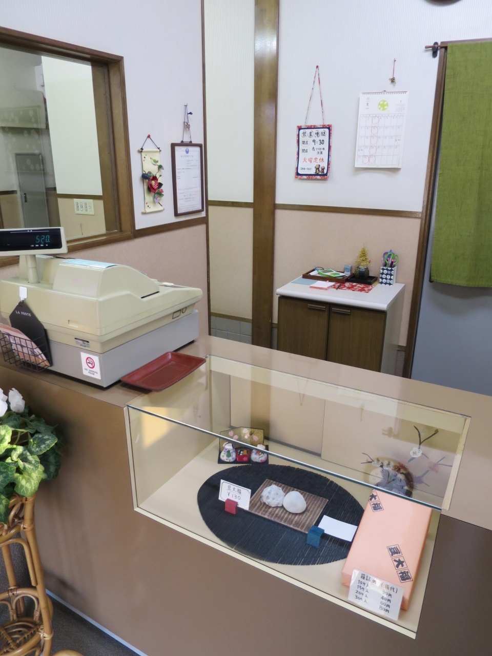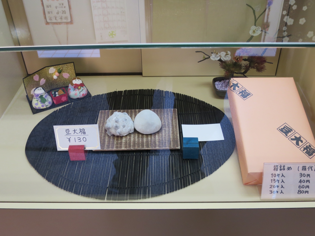 偕楽園で開かれている水戸の梅まつりを見た後、うわさの豆大福のお店、小倉屋に立ち寄りました。車で行ってみると小さなお店で、一瞬間違えたかと思いました。お店に入るとメニューはシンプル、豆餅130円だけ。美味しく食べられるのは当日だけで、日が経つと固くなってしまうとのこと。京都 出町柳の豆餅に負けず劣らずの味で、この値段とは人気なるはずです。