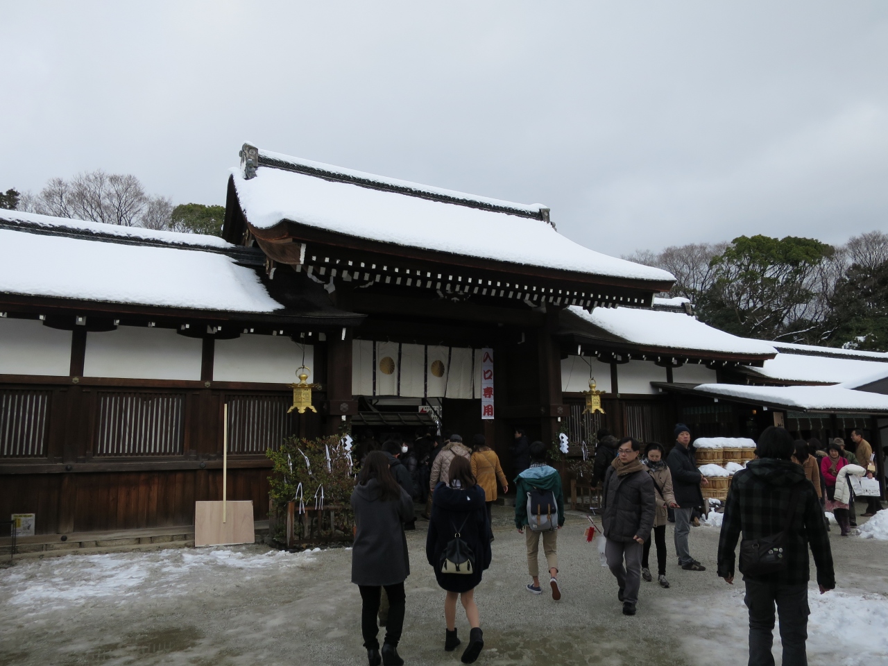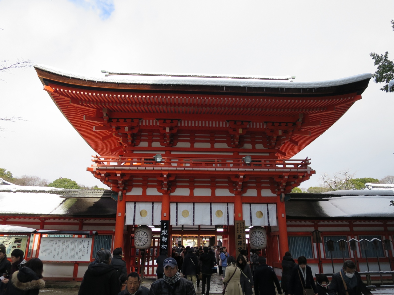 雪の降った次の日に初詣で行ったので、楼門の周りは足元の悪いところを避けるため混んでいました。存在感のある非常に立派な楼門で、下鴨神社の顔と言って良い建物です。- 旅行時期