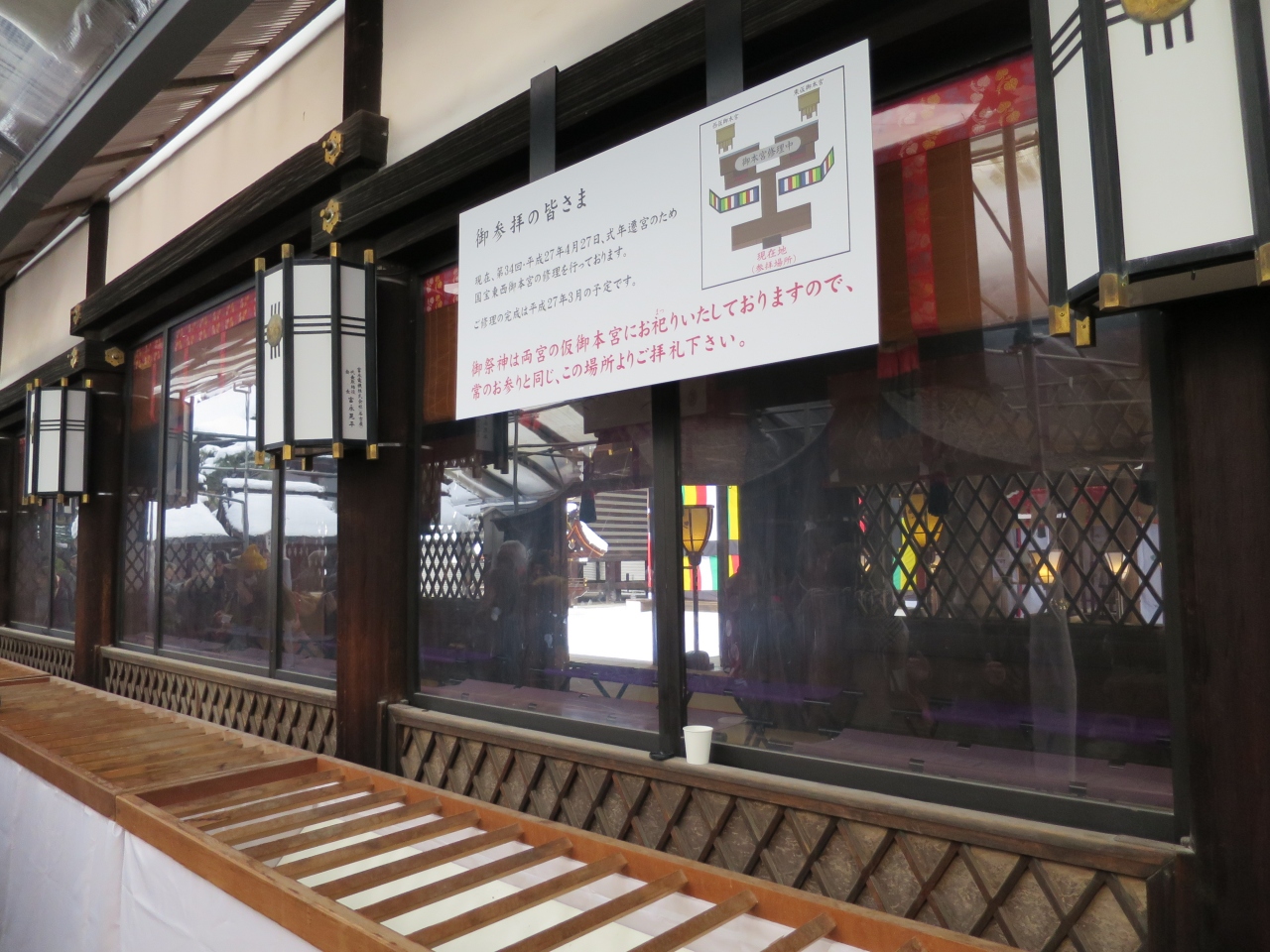 今年も昨年に続き、下鴨神社に初詣に行って来ました。舞殿には今年の干支の大絵馬がありました。で、肝心の初詣に中門を潜って本殿に行くと、工事中の様になっていました。それもそのはず。今年の4月に21年毎に行われる式年遷宮の前だったのです。そのため本殿にお参りした気がしませんでした。