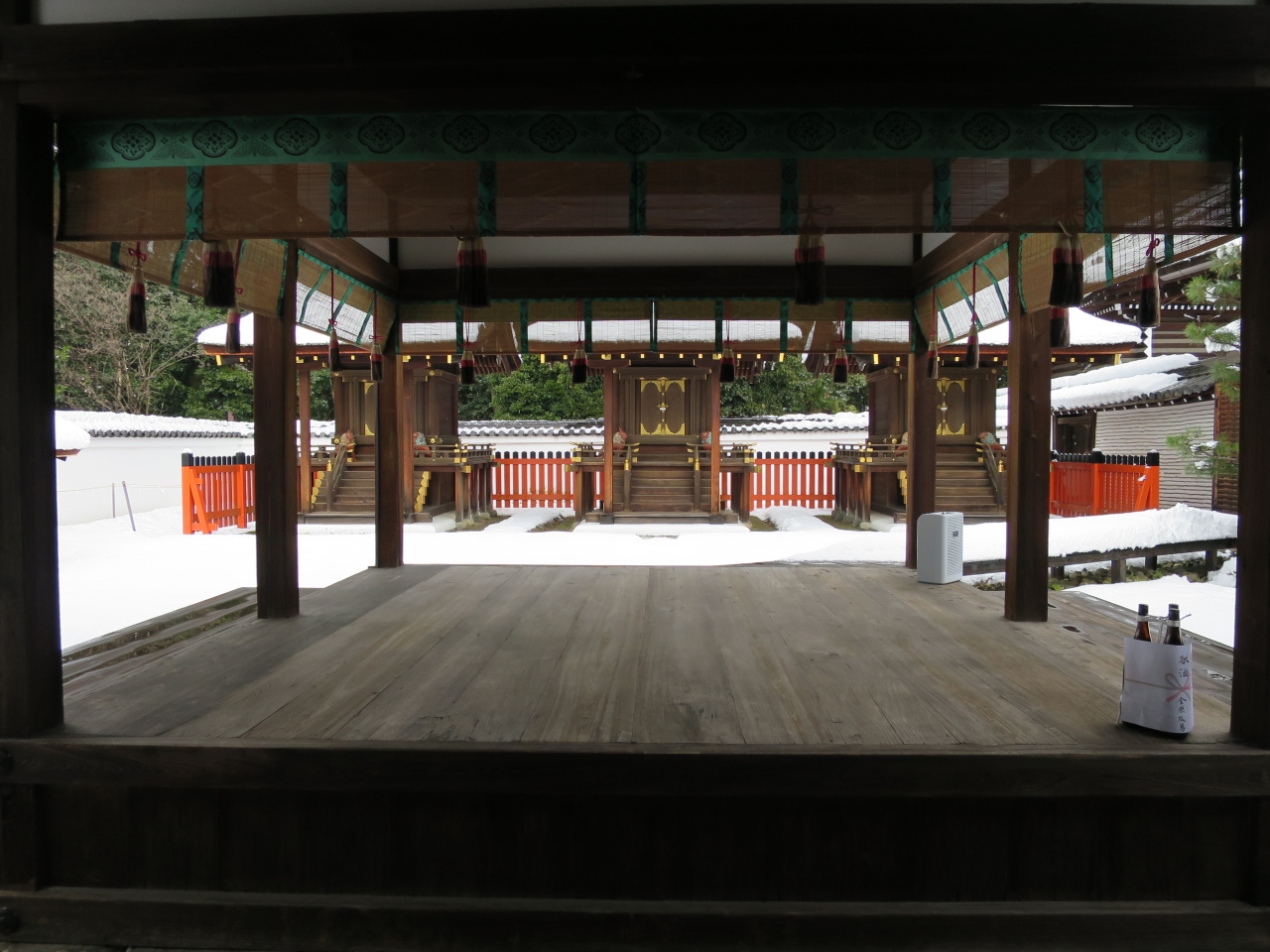 下鴨神社の楼門を潜り入った正面にある重要文化財に指定されてる建物です。丁度、境内の中央に位置します。正月には大絵馬がここに掲げられ、今年の正月も干支である羊の大絵馬が掲げられていました。毎年とても人気で、この絵馬の前で写真をパチリと撮る人が多いです。この絵馬を毎年見るのが楽しみです。