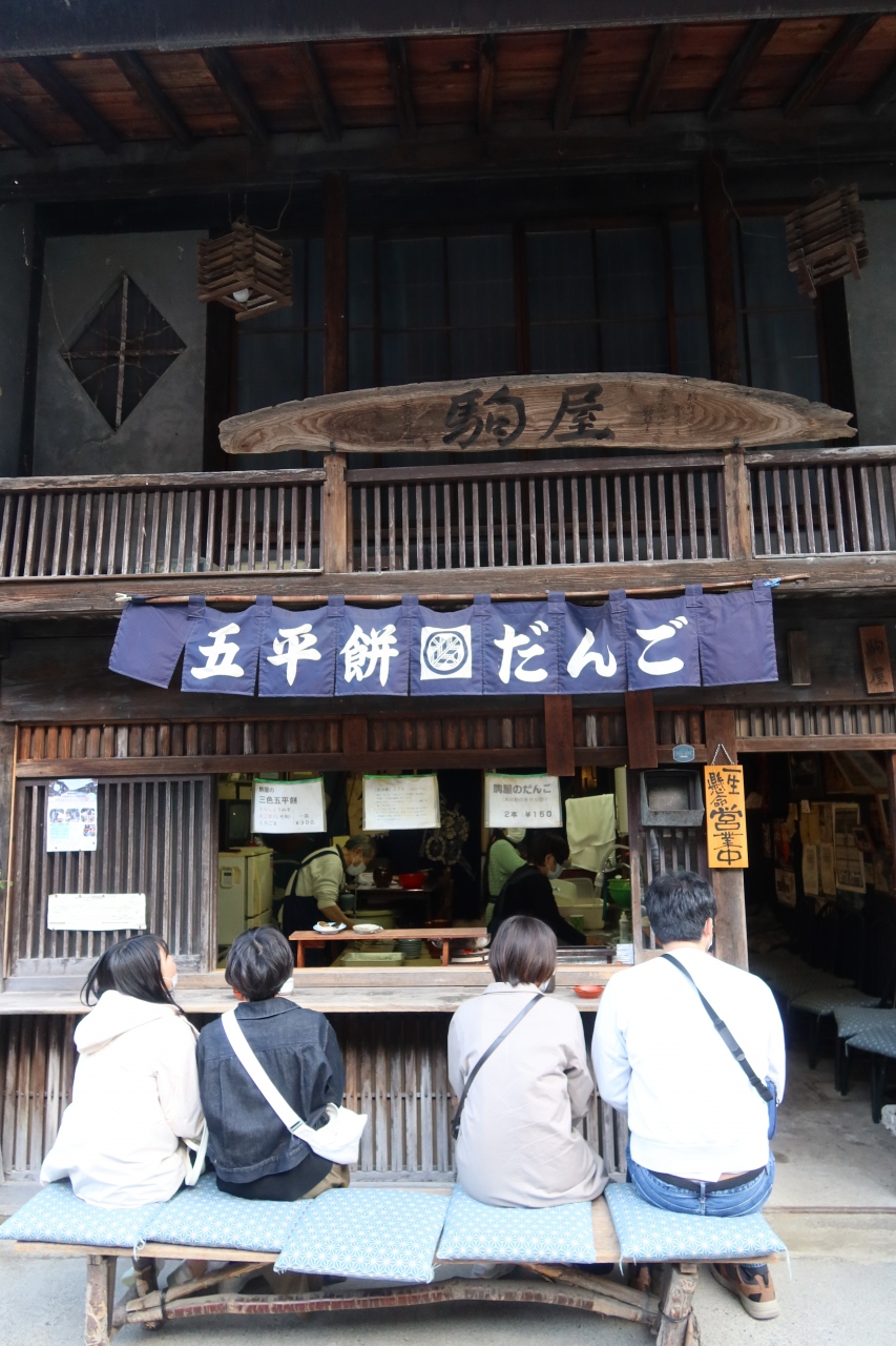 旧中山道の奈良井宿の中程、観光案内所と上問屋資料館の間に、きむらがあります。この店で五平餅を食べることを楽しみにしていきました。3時頃行くとお店は未だやっているのですが、店頭のショーケースには何もなし。店員に効いてみると、まさかの売り切れ。