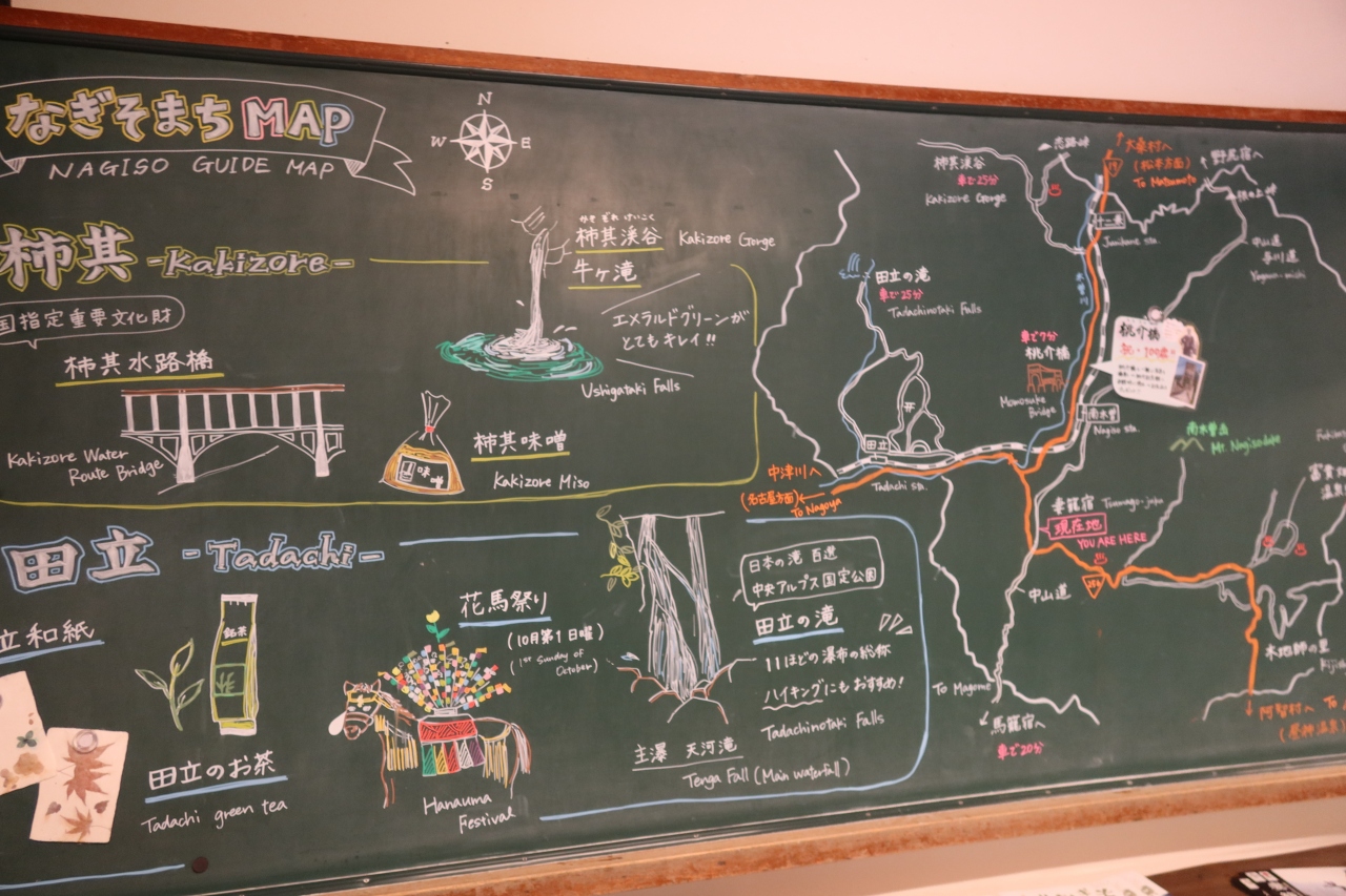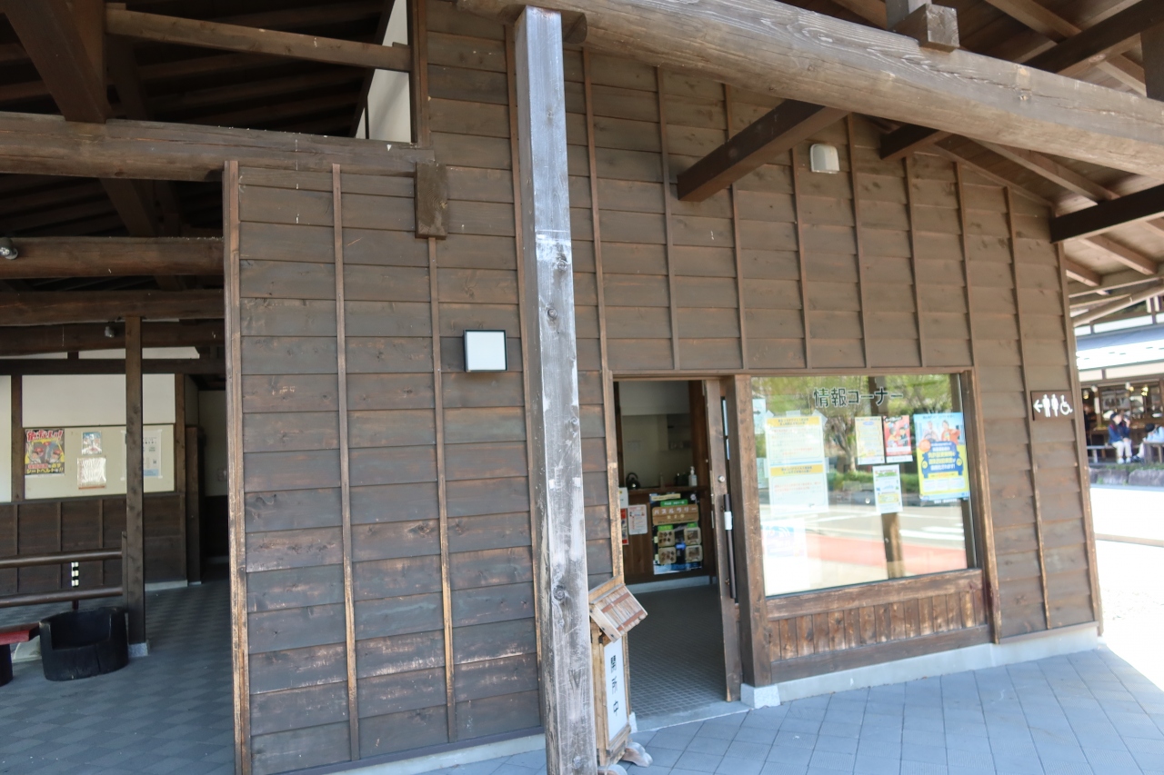 旧中山道の妻籠宿の丁度中程、妻籠宿本陣の対面に観光案内所があります。町屋の様に見えますが、明治30年に警察署として建てられた建物が使われています。館内では観光マップ等の資料や、訪問自由ノートが置かれ、休憩用の椅子も置かれています。