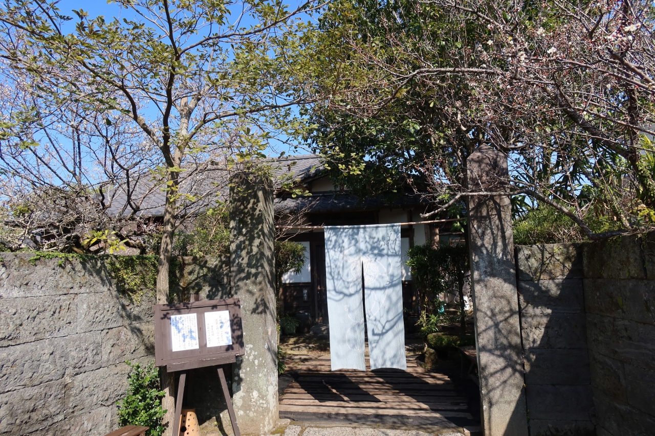 薩摩今和泉駅から北西に100m程行った旧武家屋敷の石塀の残る住宅街の中に古民家で昼ごはん梅里があります。古民家を改装したお店に、平日の12時過ぎに訪れましたが店内はほぼ満席。後から来た客は入店待ちとなるほどの人気。