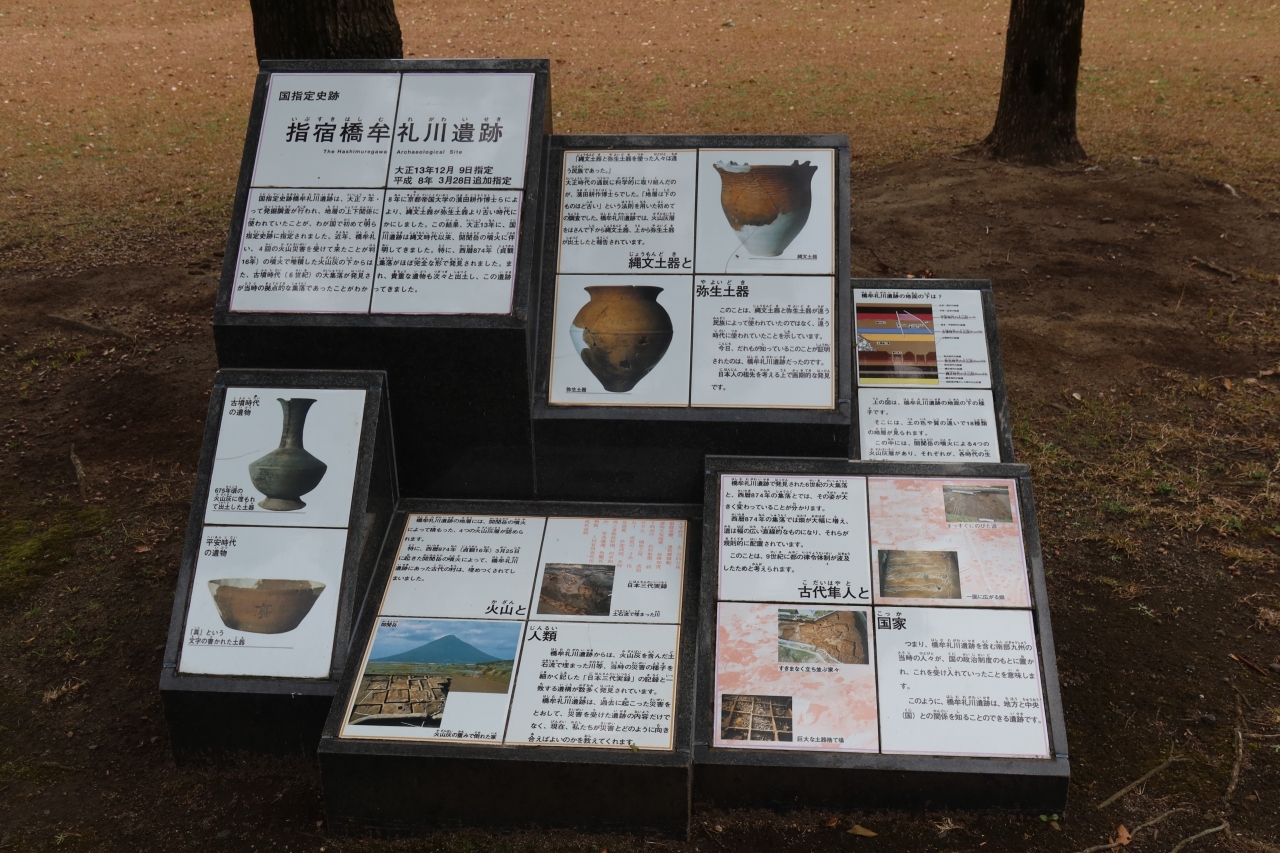 指宿の国道226号線からはしむれ通りを東に入った近くに指宿橋牟礼川遺跡があります。たまたま、通りがかったときにこの遺跡があることを知ったのですが、実は定説を覆した遺跡として有名だと言うことを知りました。大正期まで、縄文土器と弥生土器は別の民族の物と考えられていましたが、この遺跡で縄文土器のある層の上から弥生土器が発見され、縄文土器が弥生土器より古いことが発見されたことで有名な遺跡だとのこと。