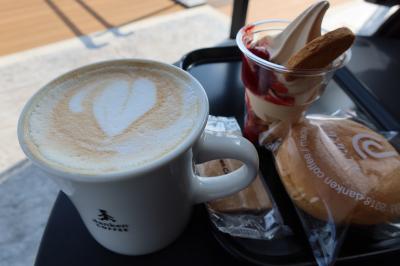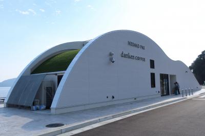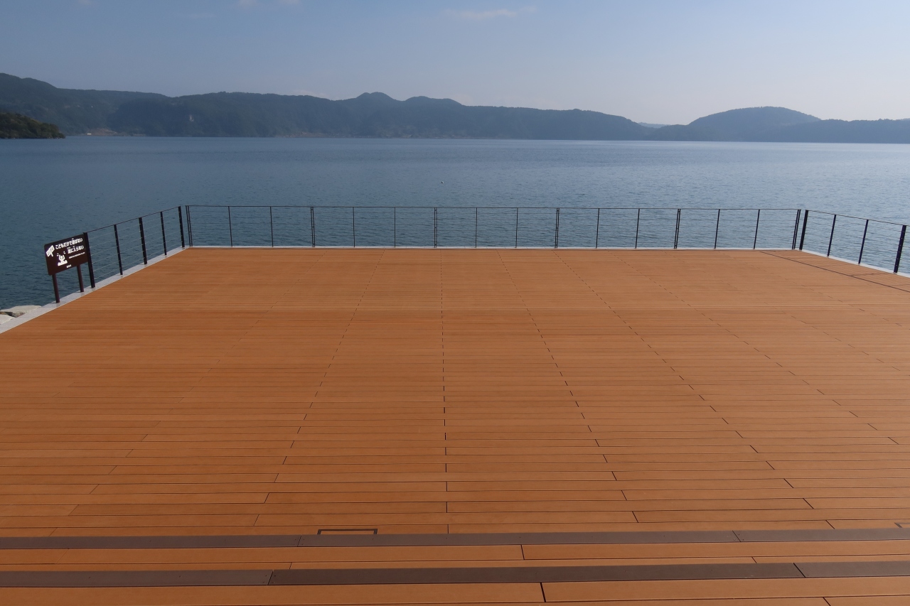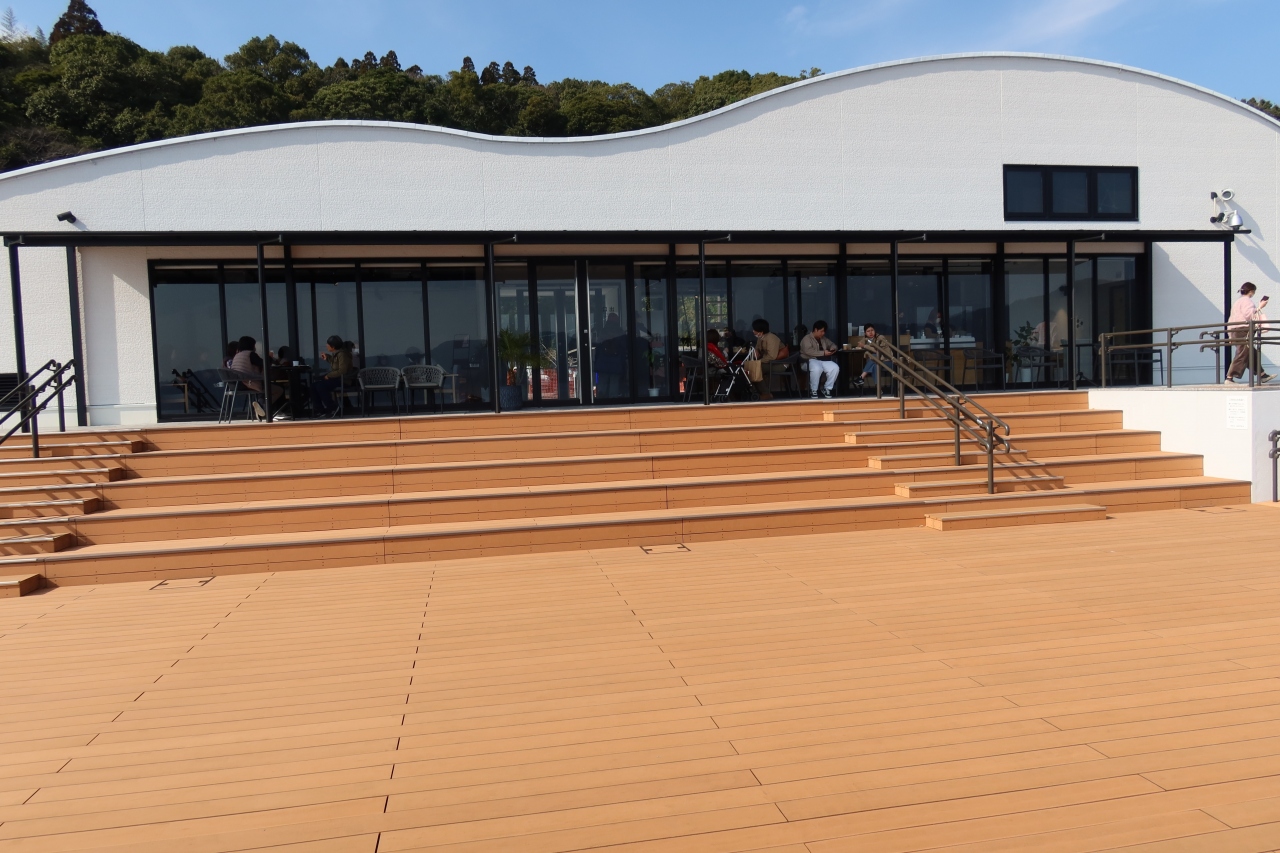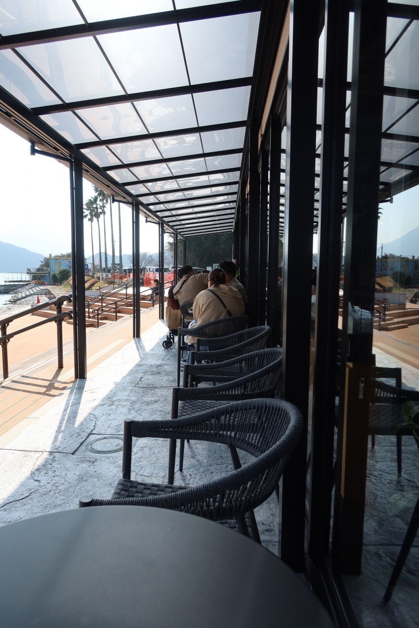 池田湖の北西部、池田湖マリーナの近くにdanken COFFEE いけだ湖パクス店があります。ユニークな形をした建物と、池田湖に張り出した板張りの舞台がとても特徴的なカフェで、池田湖を美しい姿を見ながら一服することができるカフェです。