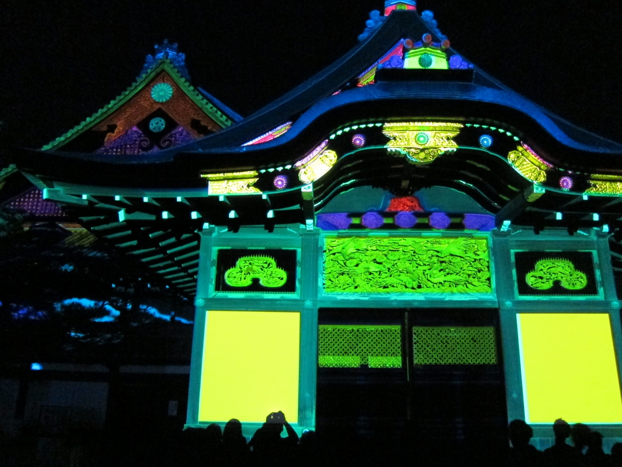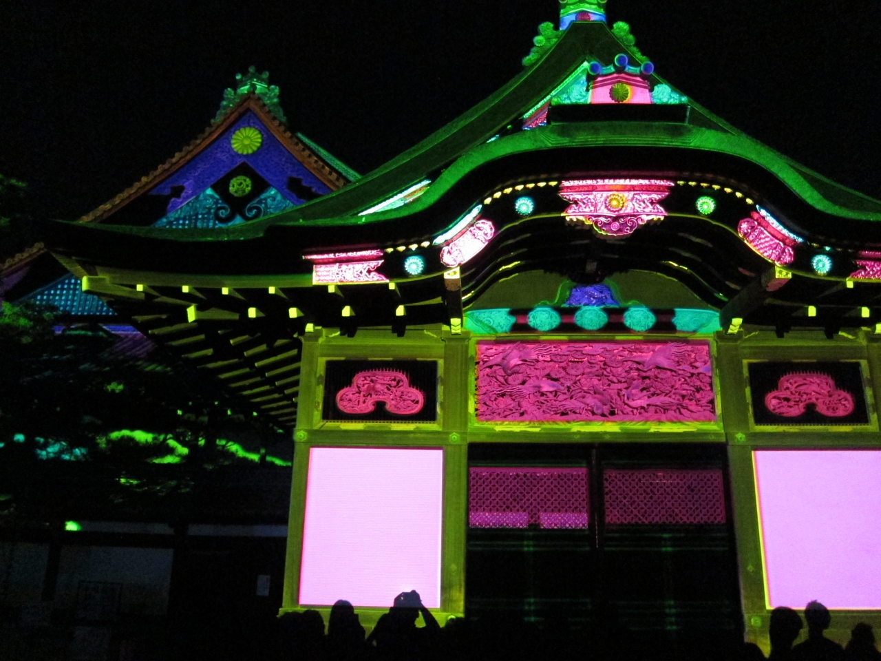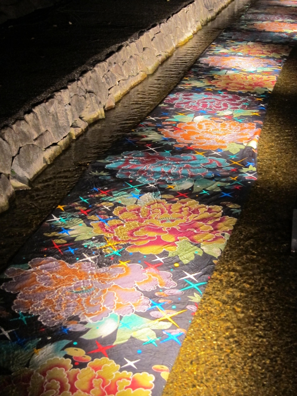 2013年度は8/5~12に堀川会場と鴨川会場で開催されました。堀川会場では世界遺産の二条城にプロジェクションマッピングをすると言うので期待したのですが、手前の松?の木が邪魔で思った程大したものではありませんでした。堀川沿いは北向きに一方通行になっているのですが、友禅流しの処や、天の川の処では写真撮影で人の動きが止まり混雑極まりなかったです。