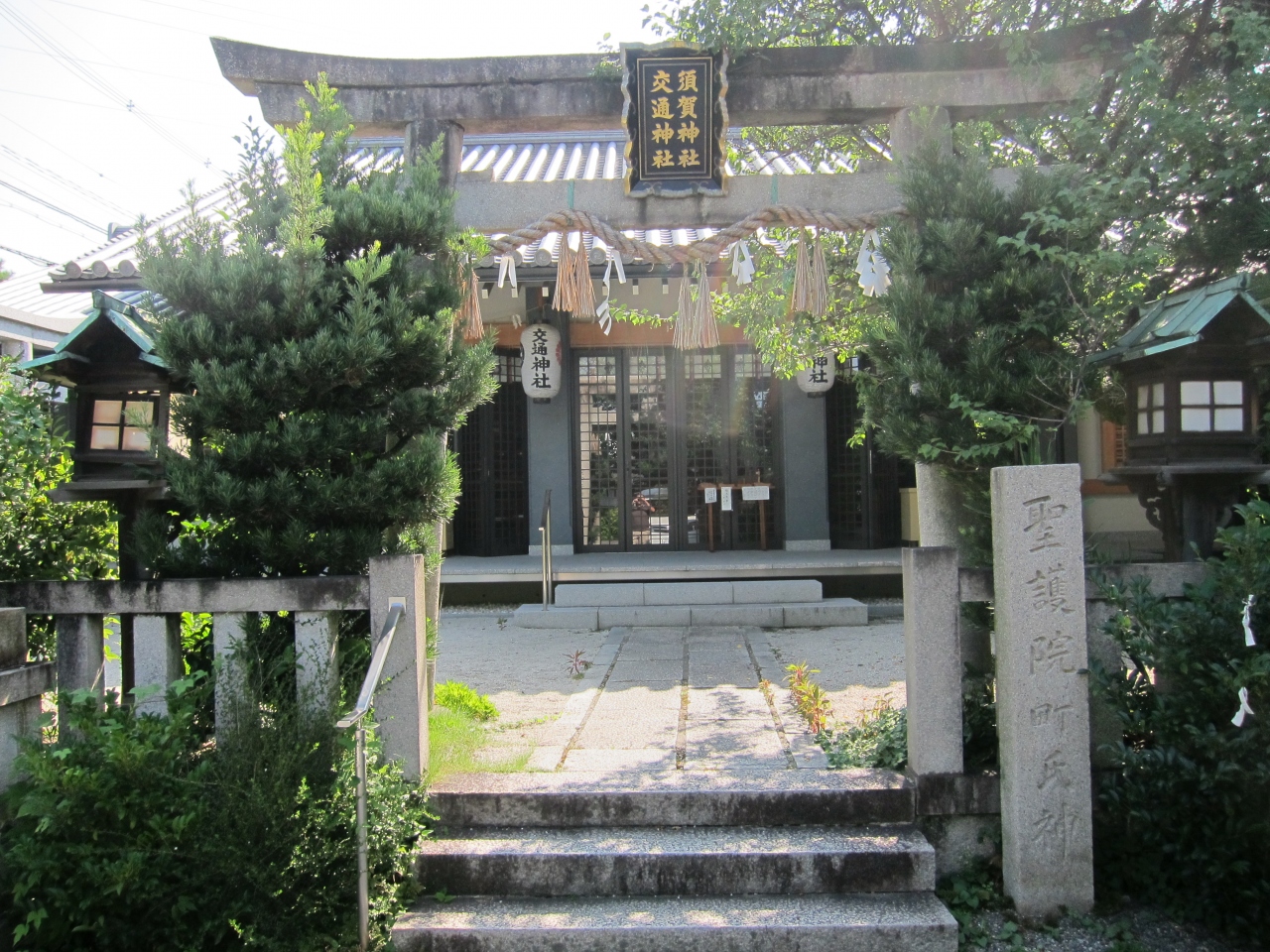 聖護院の近く、錦林小学校の西側横にある神社で、1964年に交通神社と合祀され交通神社とも言われている。神社本殿は8年前に木造平屋の本殿と拝殿、境内にある交通神社本殿を全焼し、社務所の一部も焼け、再建されています。