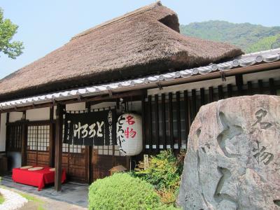 鞠子宿の慶長元年創業、400年以上の歴史を持ち、安藤広重の東海道五十三次にも描かれているとろろ汁の老舗です。鞠子には他のとろろ汁店もありますが、雰囲気も味も一番です。入口の茅葺屋根の建物は江戸時代からのもので、奥には展示室があります。
