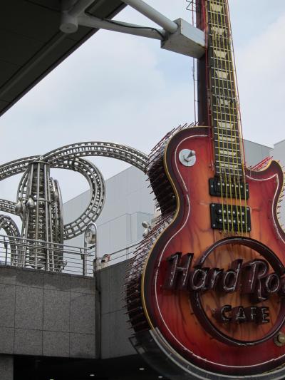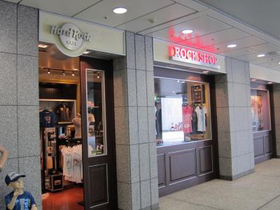 横浜ハードロックカフェはランドマークスクエアとクイーンズスクエアの中間1Fにあります。ランドマーク側には日本の店舗では珍しく大きなギターの看板が立っています。レストランとショップは隣同士ですが独立しており、レストラン側は外から見ても落ち着いた雰囲気で感じです。
