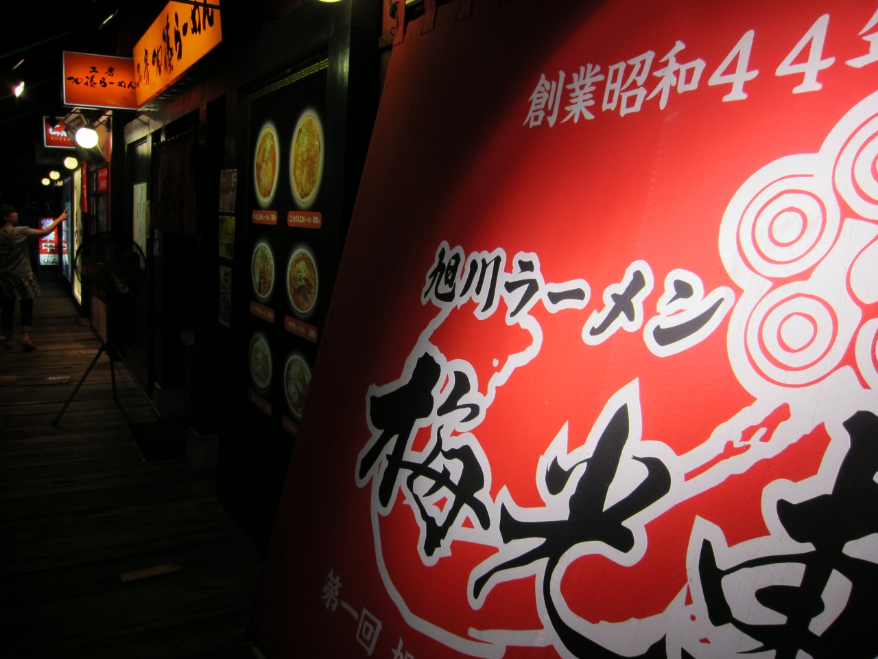 旭川永山パワーズにあるあさひかわラーメン村には、青葉、いってつ庵、いし田、天金、山頭火、saijo、加藤ラーメン、梅光軒の八軒のラーメン店が旭川ラーメンの味を競っています。どこに入るのか迷いましたが、梅光軒と山頭火の二軒に入り食べ比べましたが、甲乙つけがたかったです。効率的に味わえるのと駐車場があるのが便利です。