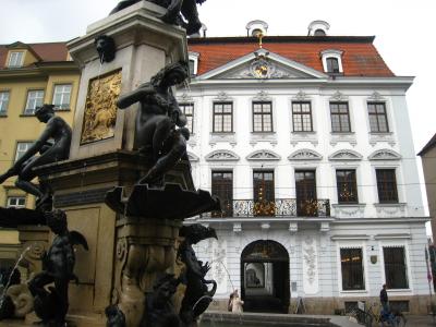 シェッツェラー宮殿は銀行家のリーベルトが1765~70に立てた宮殿で、義理の息子の名が付けられています。ロココ式の宮殿は豪華な彫刻装飾で飾られ、館内の一部は州立絵画間となっておりデューラーなどの絵画が展示されています。