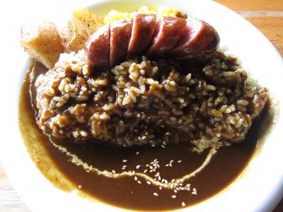 海の日三連休の中日に行きました。開店前の10:50頃に着きましたが、既に10組以上が並んでおり、駐車場も満車でびっくりしました。結局開店と同時に席に着けましたが店内でも、屋上でもなく、屋外のテーブル席で並んで待っている人の視線がちょっと気になりました。ソーセージカレーの大盛りを頼みましたが、店内に行き合言葉「ルールルルー」を言って追加無料のルーを貰いました。味は結構辛目ですが、私には丁度良かったです。