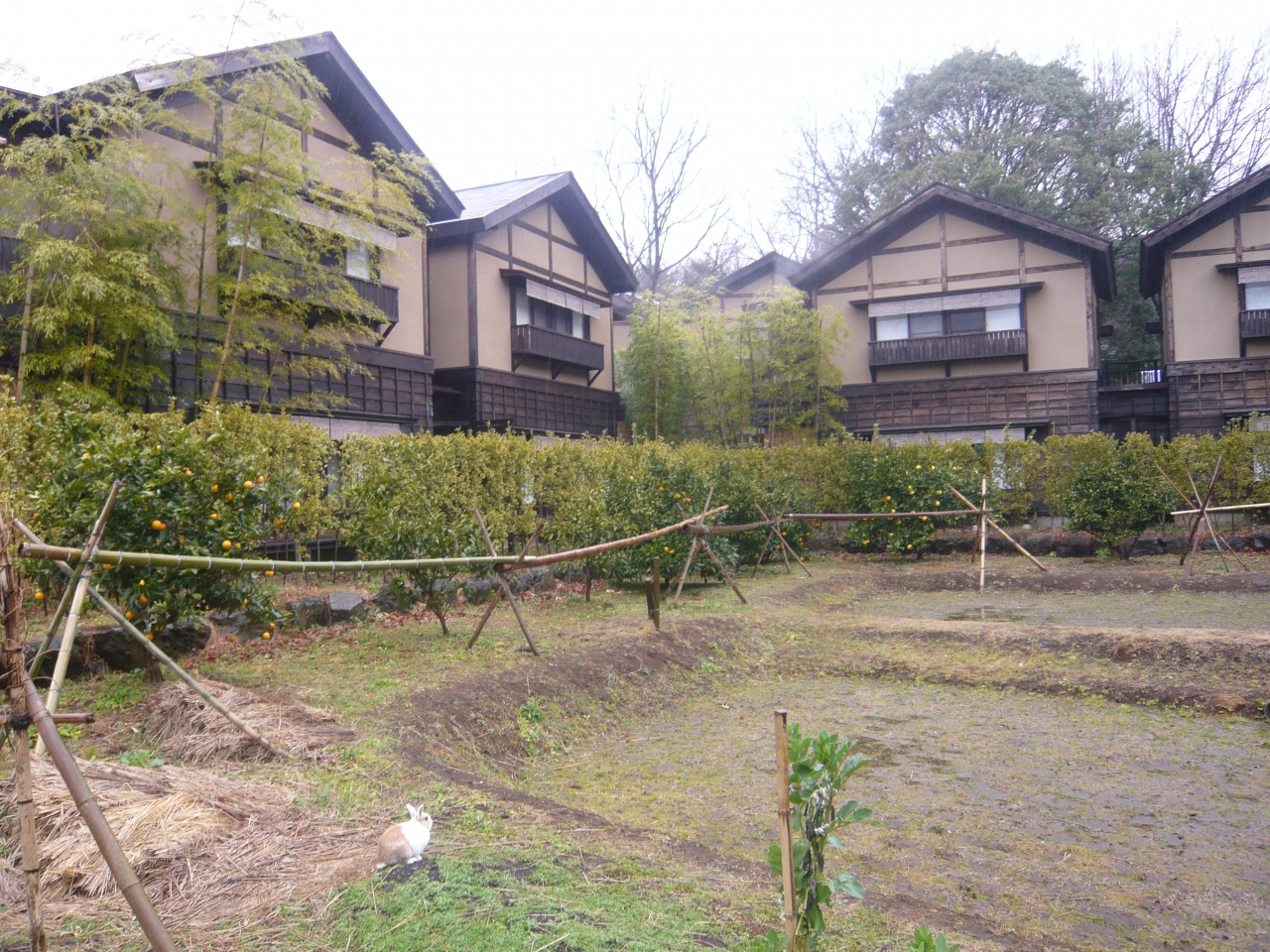 きらの里は伊豆高原の国道135号を山側に入ったところにあります。夕暮れ時に到着すると、赤目の生き物が動くのが見えびっくりしましたが、敷地内に兎が放し飼いにされていました。泊まった部屋は旅籠 八幡野です。食事は肉と魚の2種から選べ、魚を選び食事処で頂きました。食事処でも窓の外にリスを見かけることが出来ました。お風呂は湯宿が別棟になっており、冬の寒い時期、天気が悪いときは部屋からのアクセスにちょっと難があります。しかし、貸切風呂が3つあり無料で使えるのは良かったです。