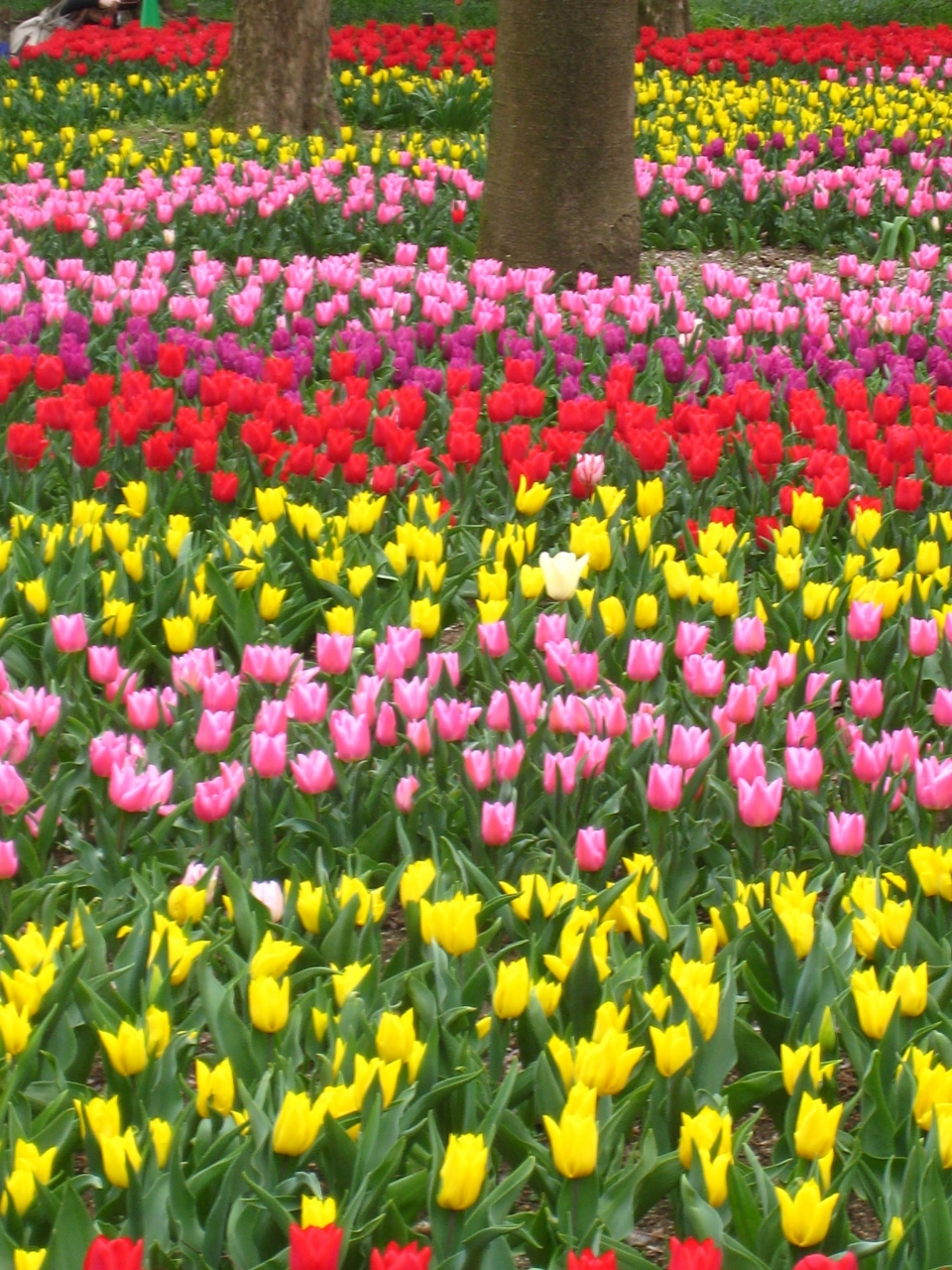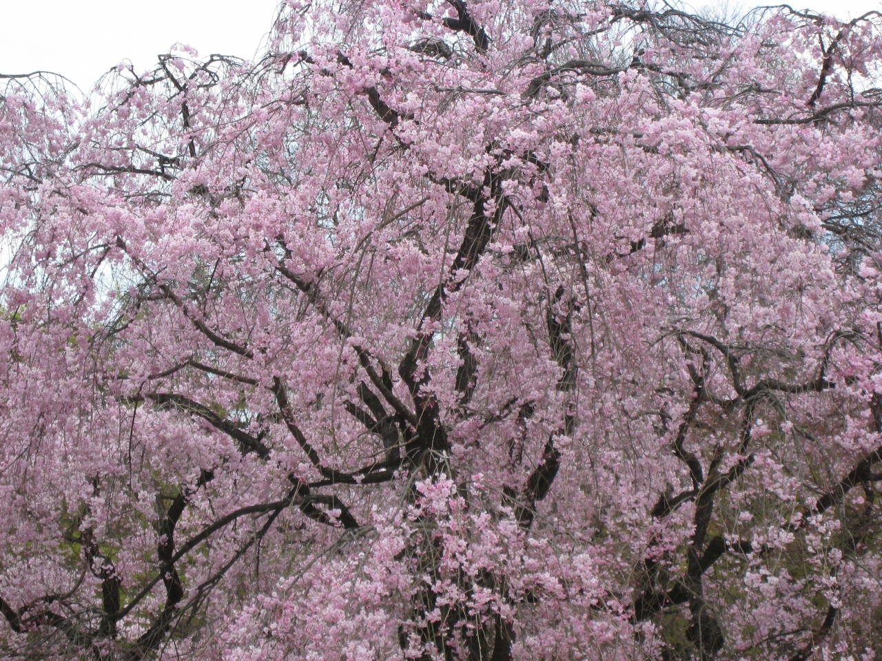 京都の桜と言えば、醍醐寺、平安神宮、哲学の道、二条城が有名で観光客が多いですが、京都府立植物園の桜も見事です。鴨川沿いでは枝垂れ桜が並木になっていますし、広大な園内では老木から枝垂れ桜があり、またチューリップと併せて咲いている花を楽しめます。上野公園の様に酔っ払った人も居らず、憩いの場所です。